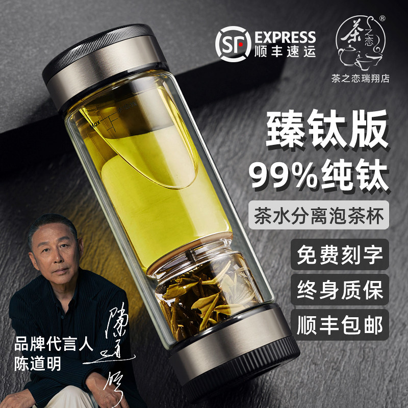 Tea love Titanium edition tea water separation tea cup men's portable business water cup High-grade double filter glass