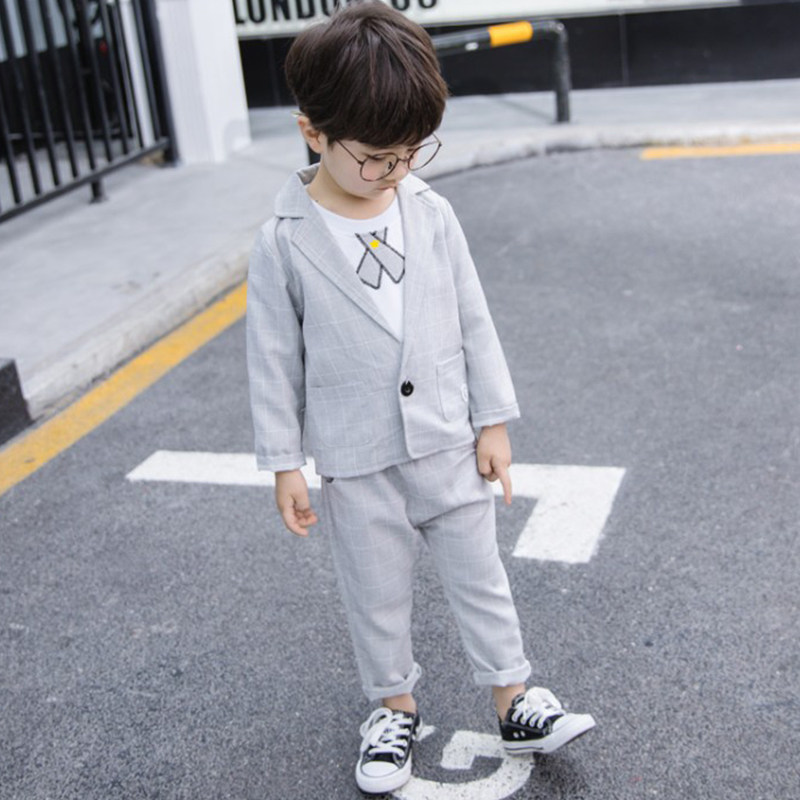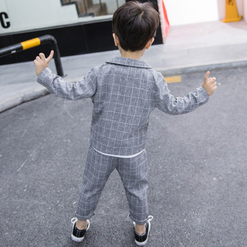 Boy suit Plaid spring style year-old spring and autumn casual dress Boy boy baby Children's suit Male small suit suit