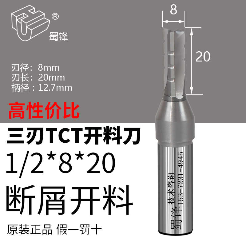 Shu Feng's three-edged open material knife wood cutter large full numerical control engraving machine tool head electric wood milling cutter tungsten steel gong knife notching