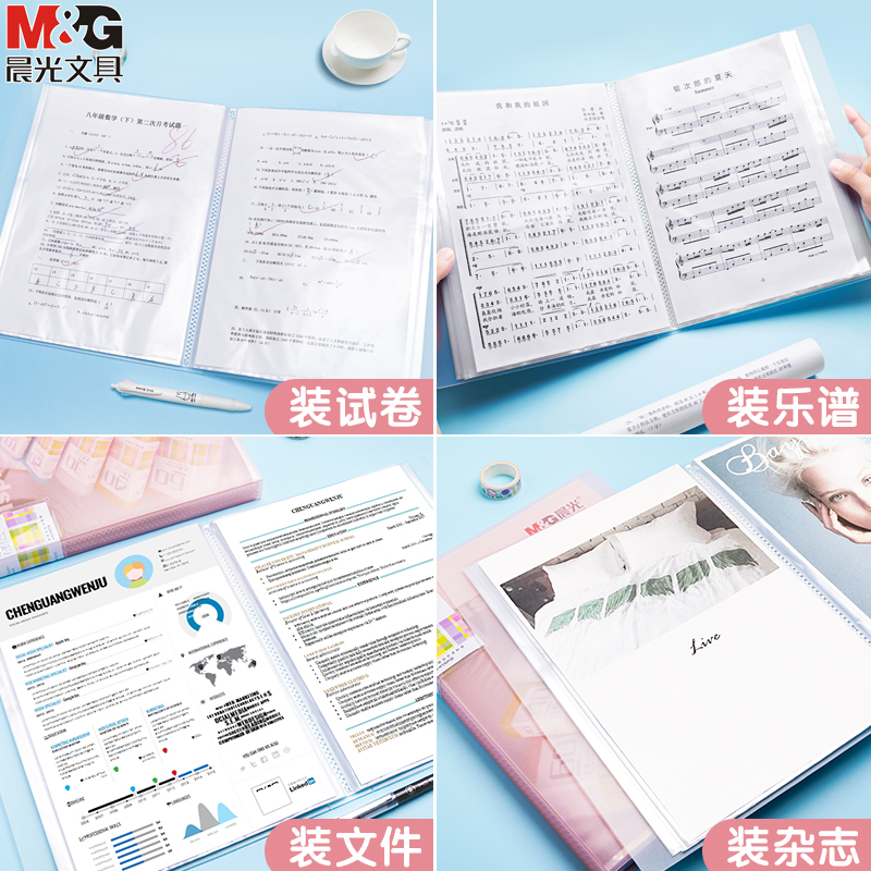Morning light A4 data book transparent inset paper storage and finishing artifact Students with 60 pages of multi-layer folders Junior high school students with 40 pages of large capacity paper clip Music clip Pregnant women maternity inspection file bag