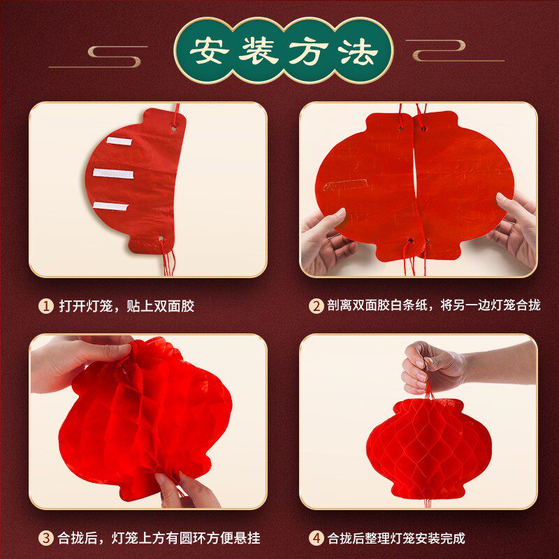 New Year's little red lantern hanging Decoration New Year waterproof paper decoration scene arranged outdoor Spring Festival tree shopping mall room string lights