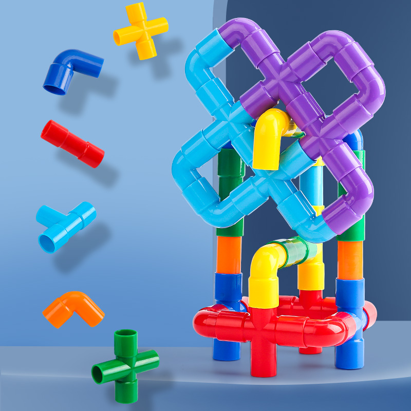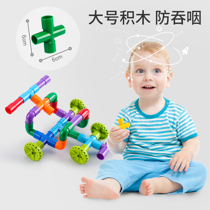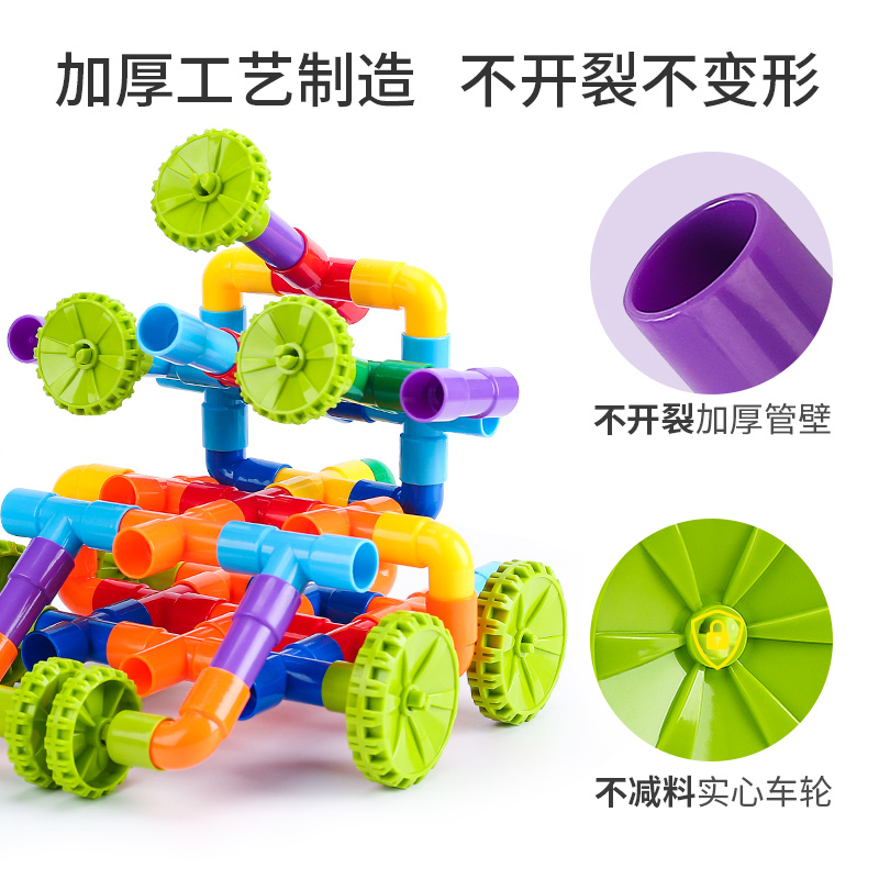 Water pipe building block parquet 2 babies splicing multifunction 3-6-year-old boy, children's intellectual moving brain assembly toy
