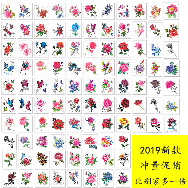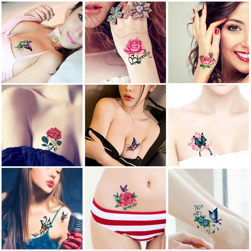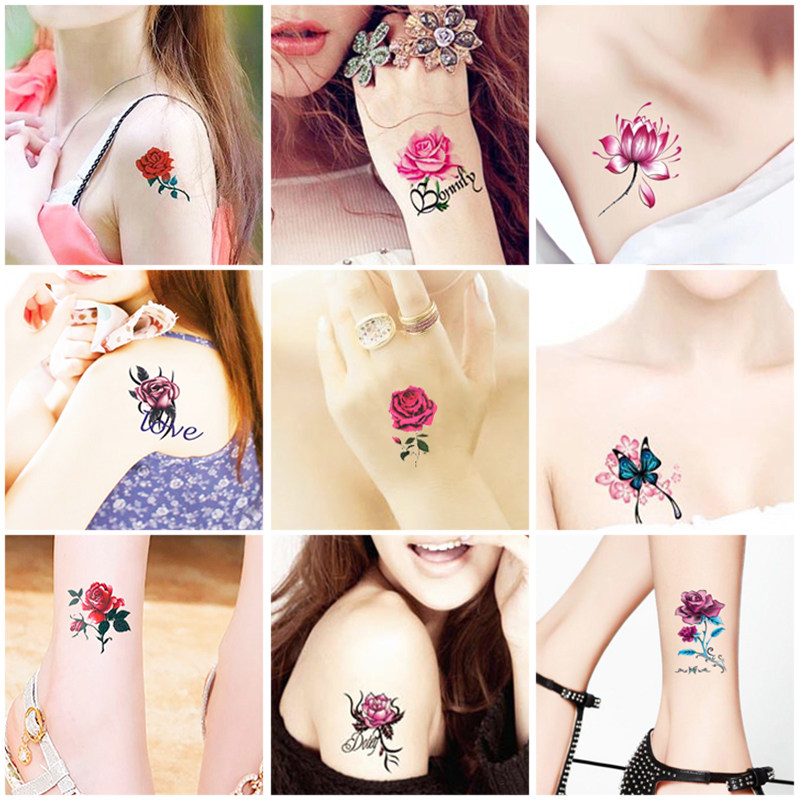 Tattoo sticker Waterproof Durable Emulation Little Fresh Rose Flowers butterfly Scar Cute not dropping 3D stickers