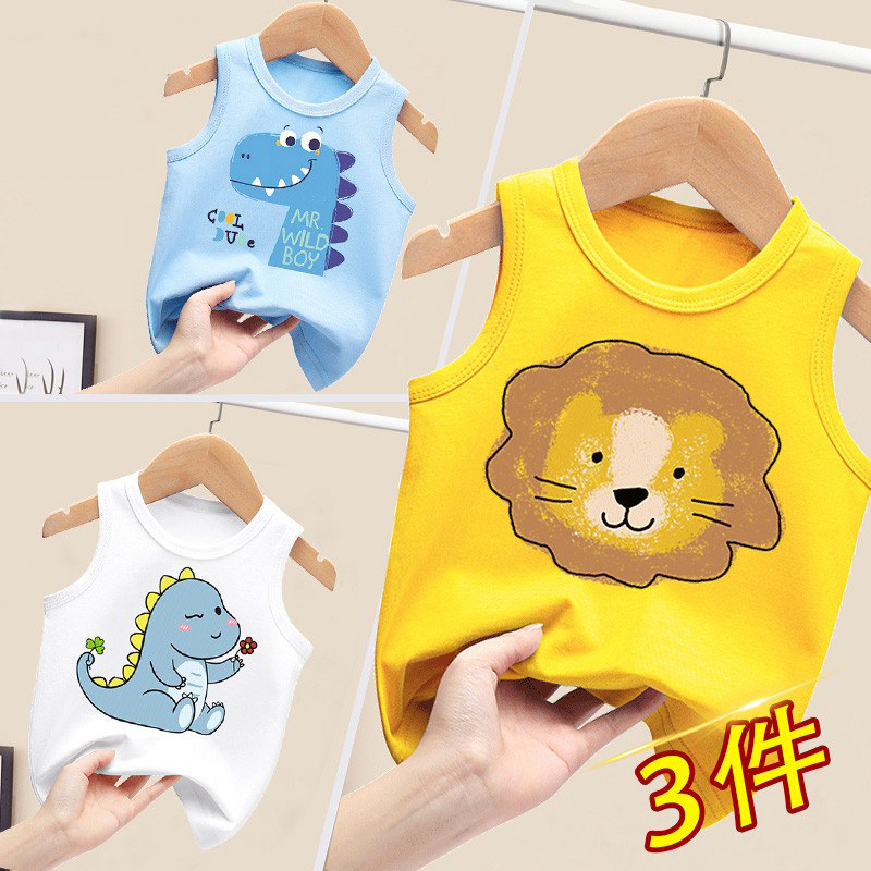 Boys Sleeveless T-Shirts Children's Thin Summer Clothes Baby Sling Clothes Baby Cotton Tops Summer Outer Vests