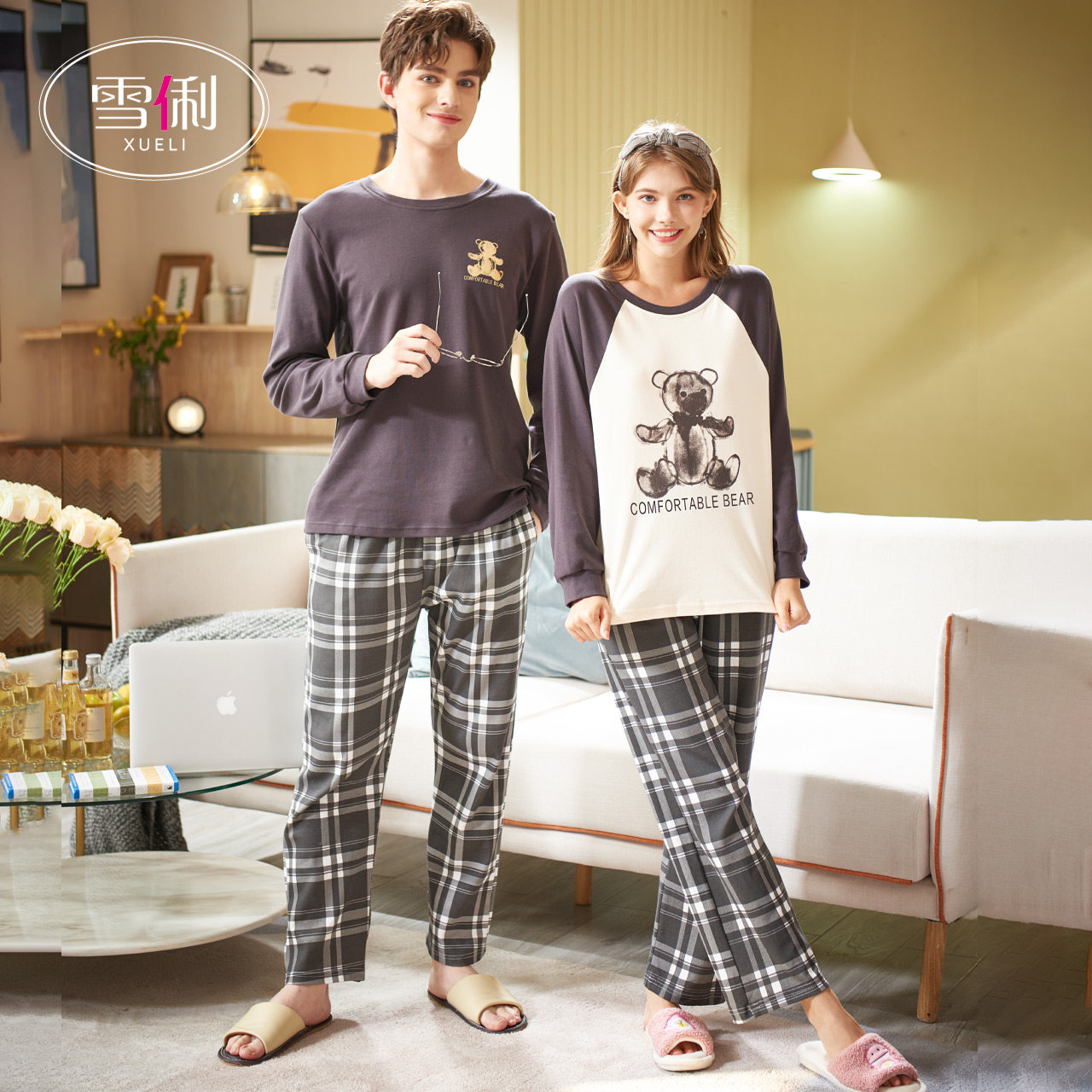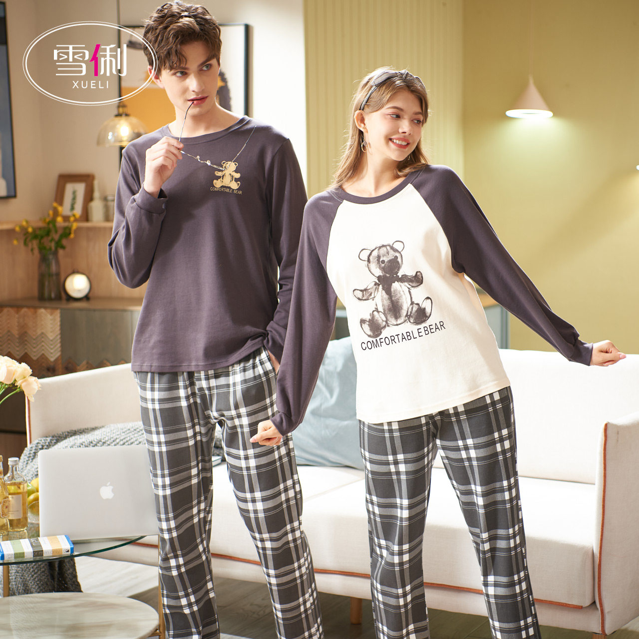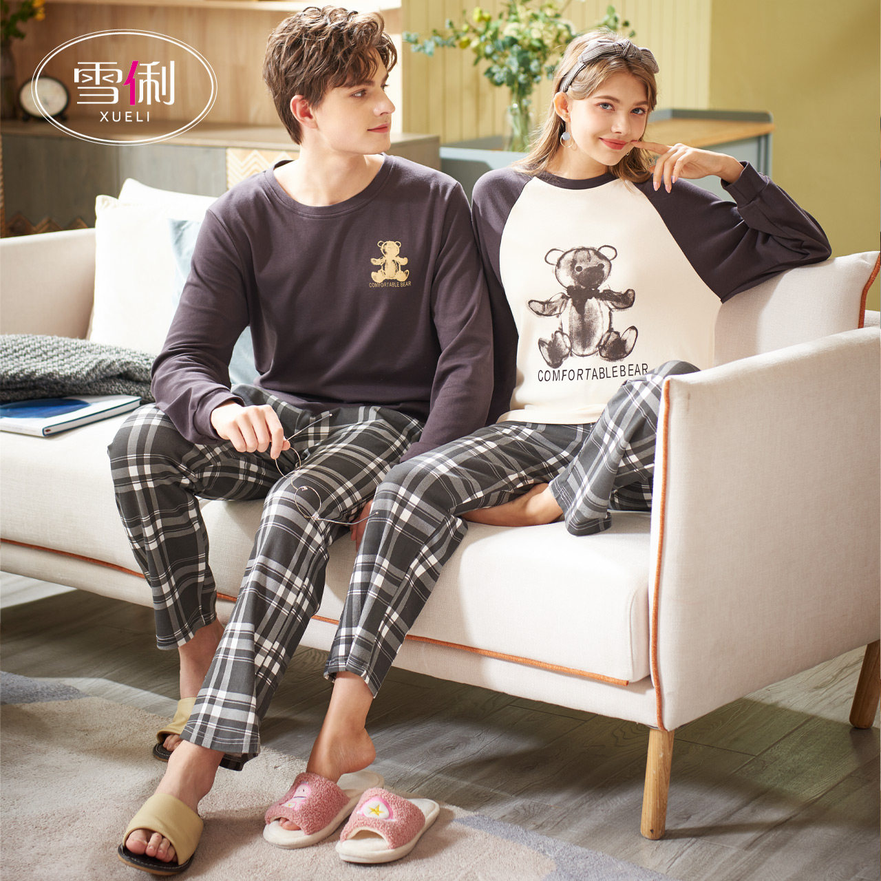 Snow Li couple pajamas women spring and autumn long sleeves sports casual men can wear plaid loungewear 2022 new model