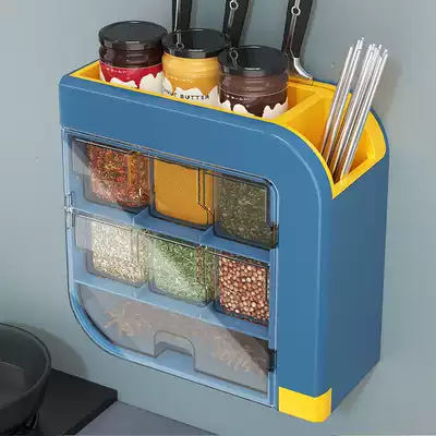 Wall-mounted seasoning box integrated multi-grid kitchen supplies household combination set hanging wall salt monosodium glutamate seasoning bottle jar