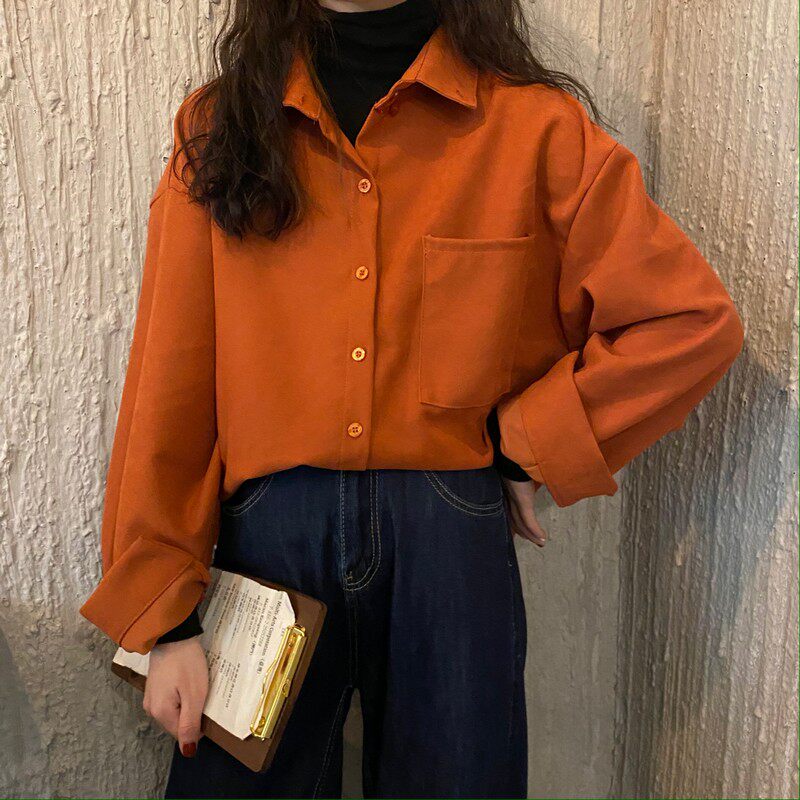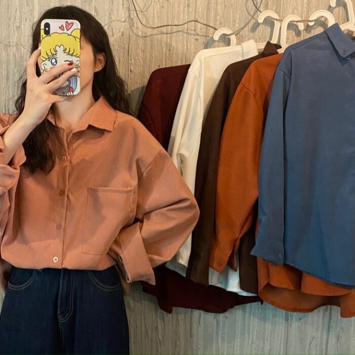 Korean Version Design Sensation Small Crowdsourced Autumn Winter New Light Core Suede 100 Hitch Shirt Lady Loose Long Sleeve Jacket Shirt