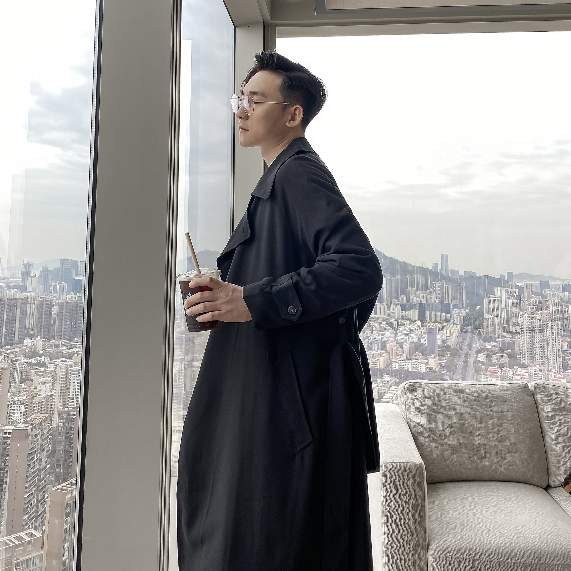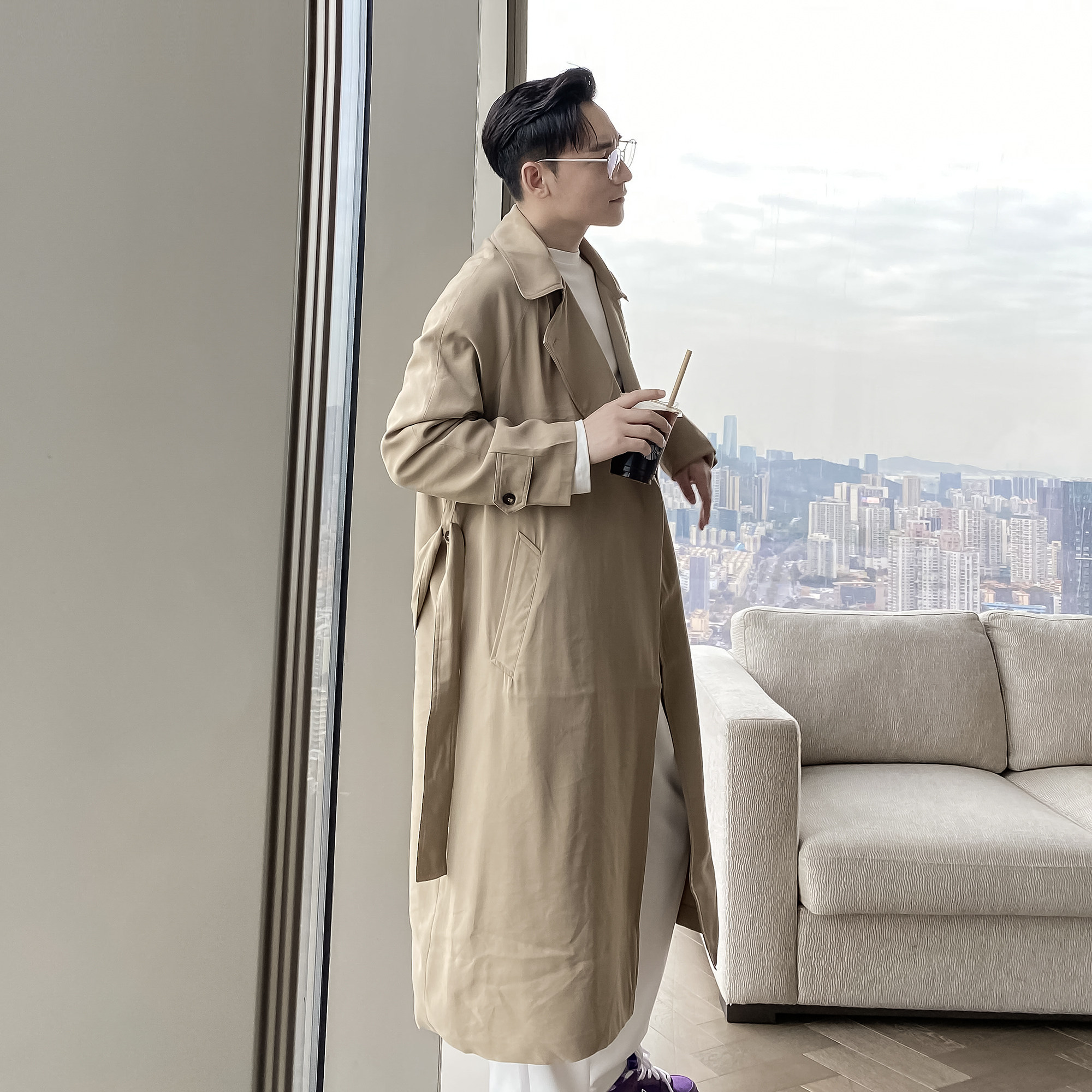 (VERA KANE) South Korea ins Spring and Autumn Leisure over the knee long Joker loose British temperament windbreaker tide man