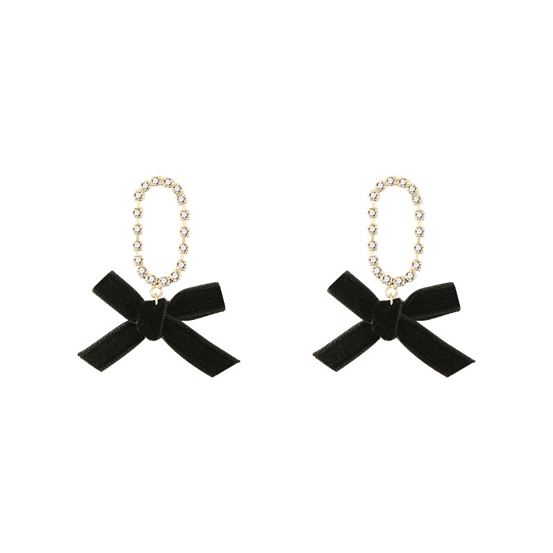 Black bow pendant earrings Black bow pendant ear clips