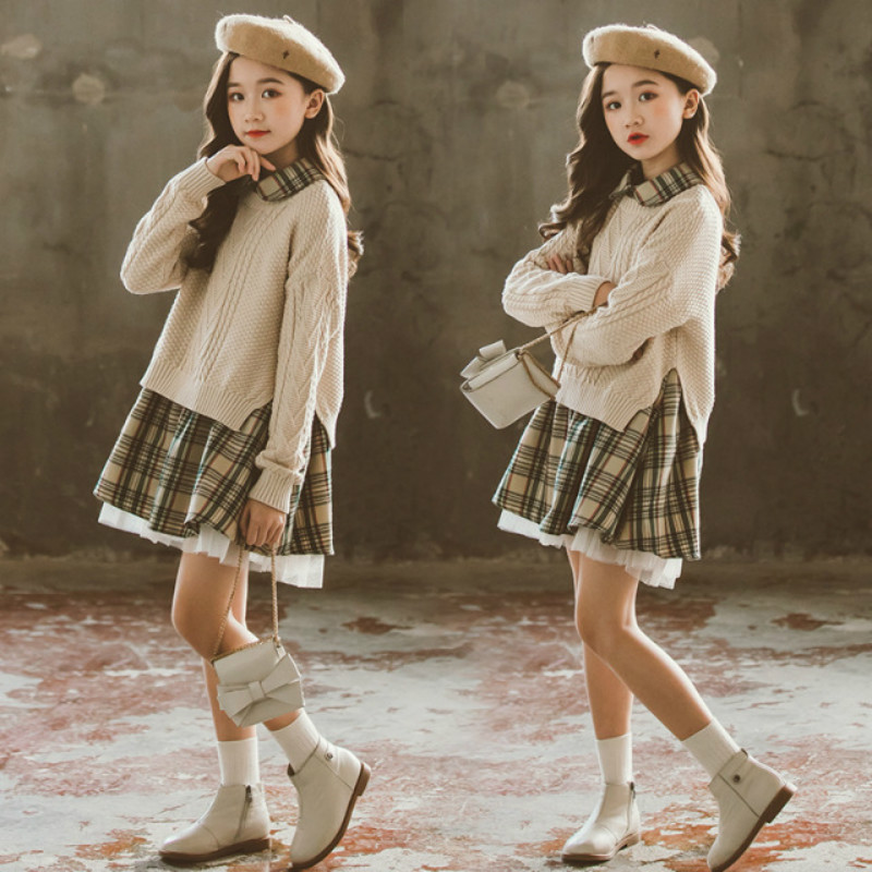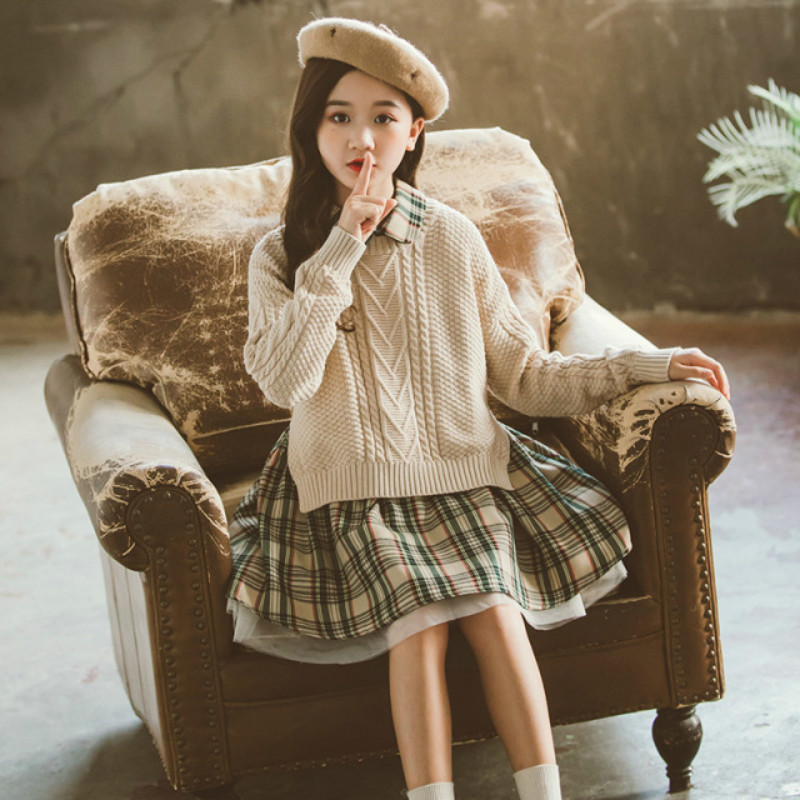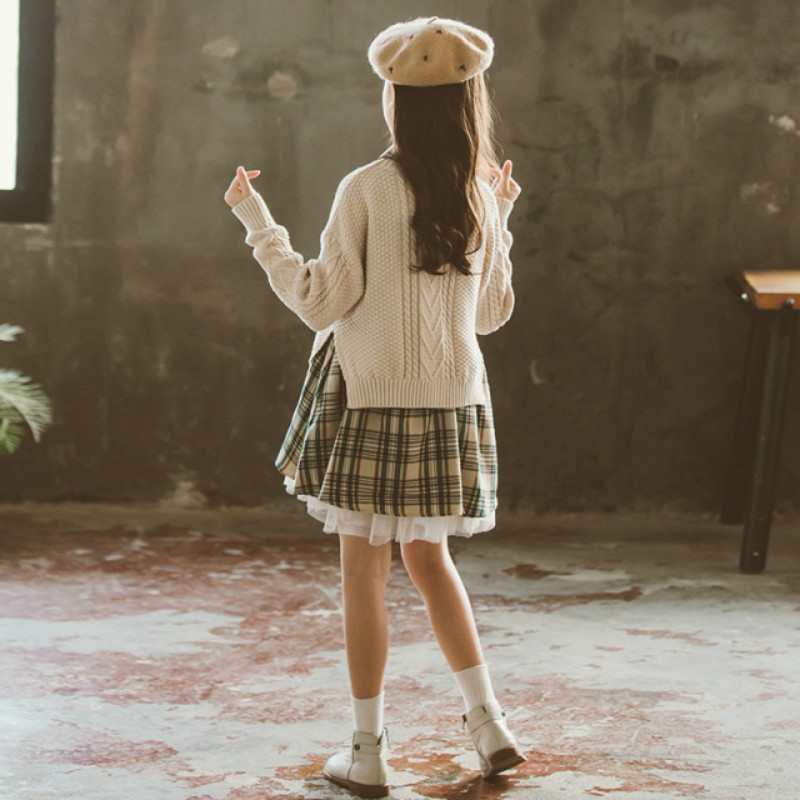 6 Girls spring and autumn suits new 9 Western style children's long-sleeved knitted sweaters 14 vest skirt girls two-piece set 12 years old