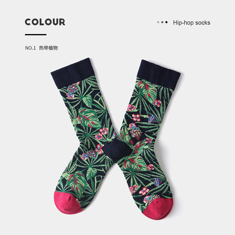 2021 new French oil painting Tide Card Cotton Socks Female Season Jacquard Mesh Red Personality Casual Creative Street Skateboard