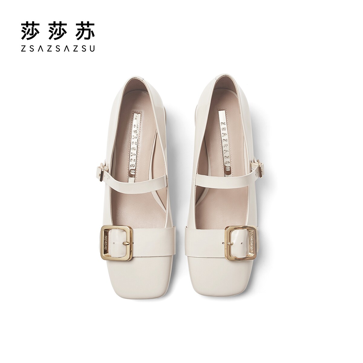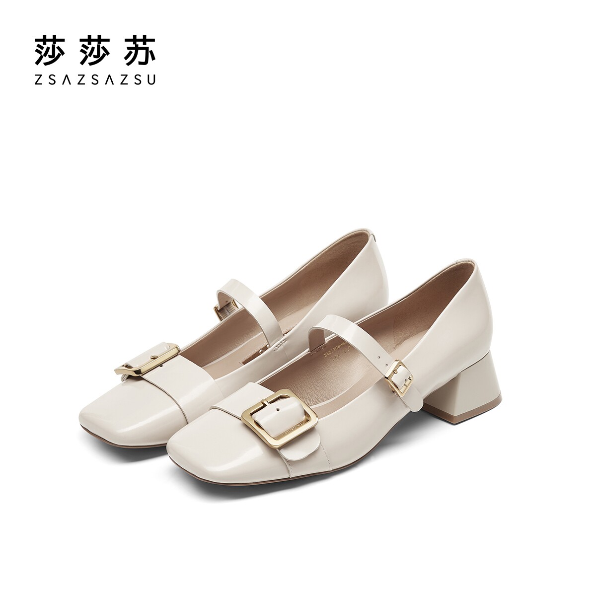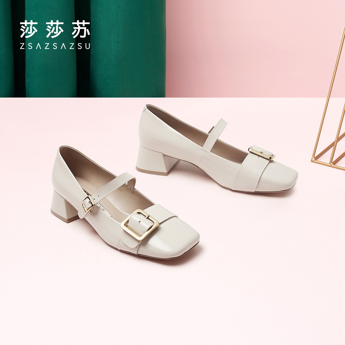 Sasha Su spring and summer retro high-heeled Mary Jane small leather shoes women's medium thick heels shallow mouth square head one-foot soft-soled shoes