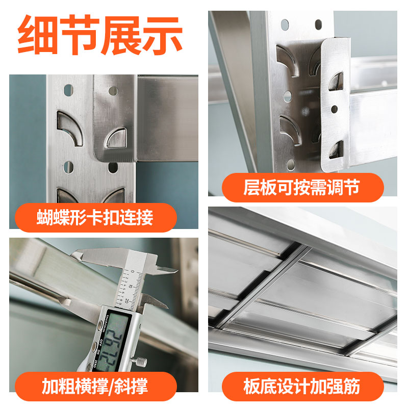 304 Stainless Steel Heavy Duty Warehousing Shelf Commercial Multilayer Cold Storage Food Factory Storeroom Medical Rust-proof Shelving