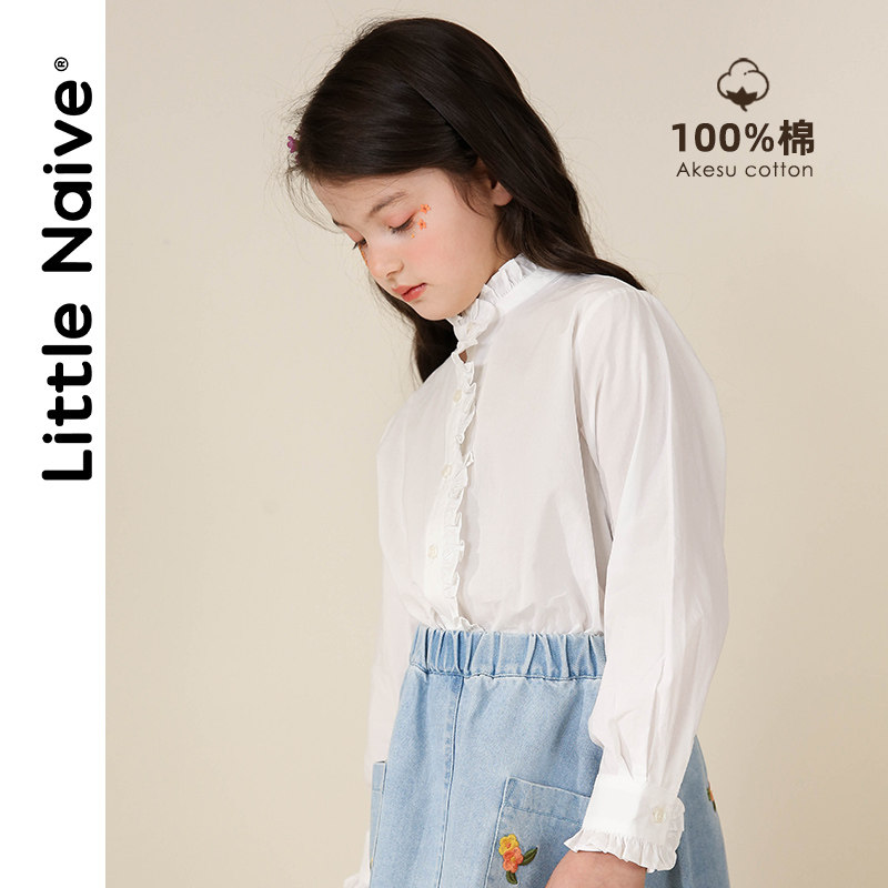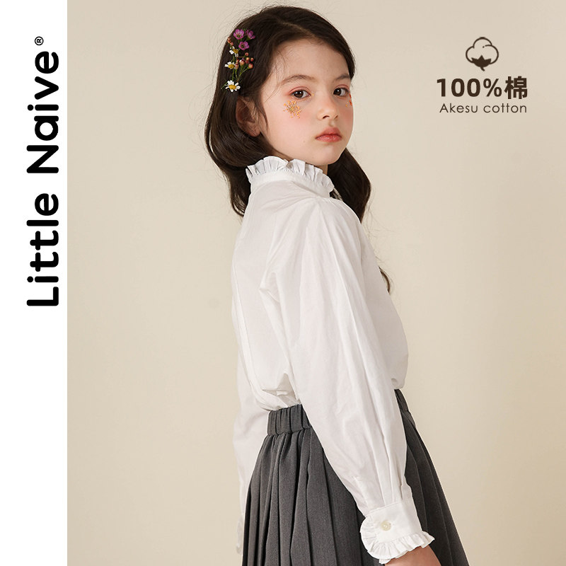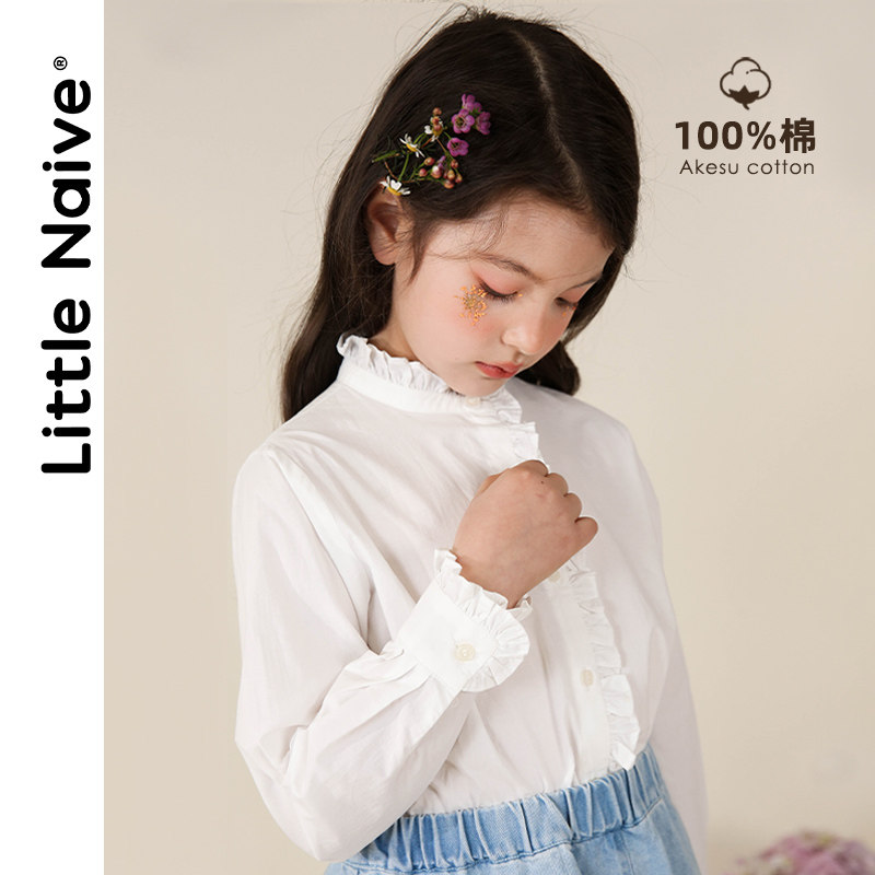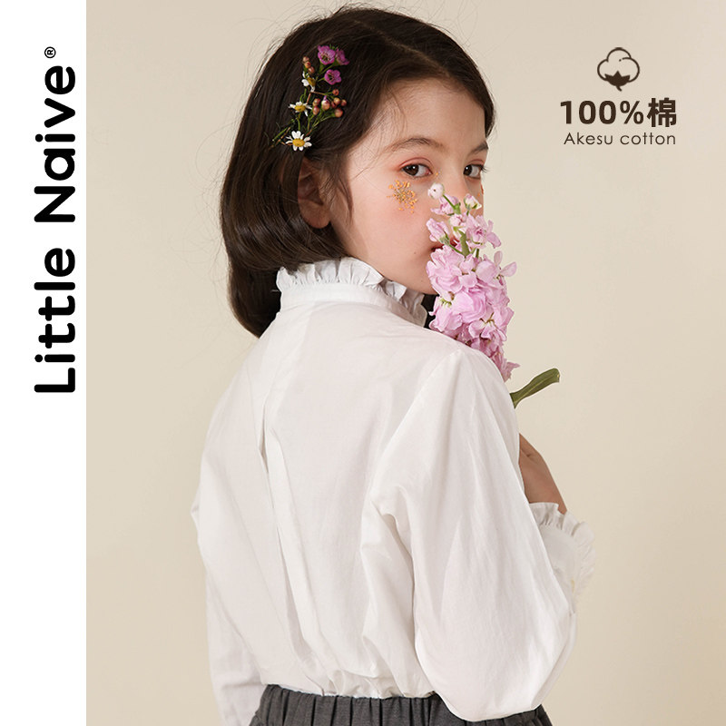 LittleNaive little naive girl White Shirt Academy style 2021 Spring Lace stand collar vintage shirt