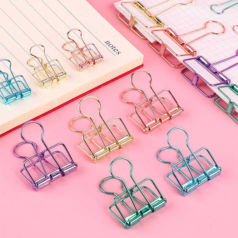 Color hollow-out clip stationery metal iron strong long-tail clip tool dovetail clip fixed ticket clip large universal office document clip small fresh lovely son rose gold examination paper clip