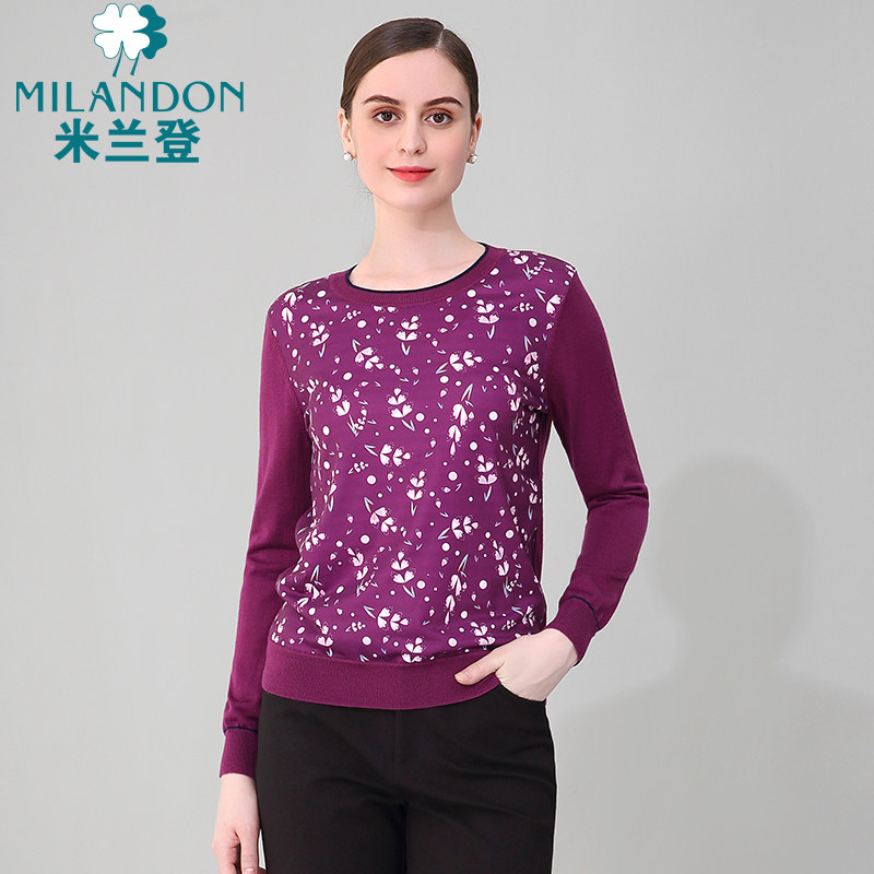 Milan Den Middle Aged Mother Dress Short-knitted sweatshirt Women 2022 New spring Long sleeves Round Collar Casual Blouse