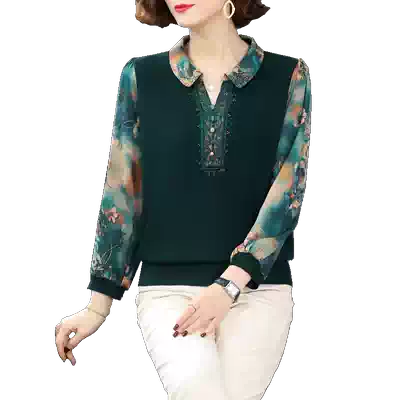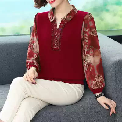 Mother's spring and autumn top, Western school, middle-aged and elderly women's bottoming shirt, middle-aged 40-year-old 50 fashion T-shirt, new small shirt
