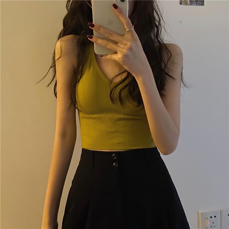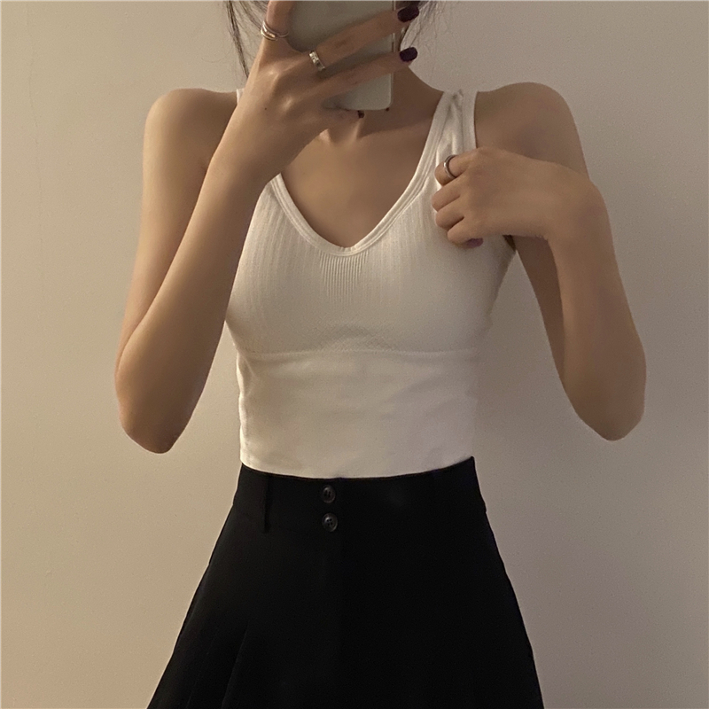 White sweet hot girl small camisole women's inner wear 2023 spring new beauty strap chest pad short bottoming top