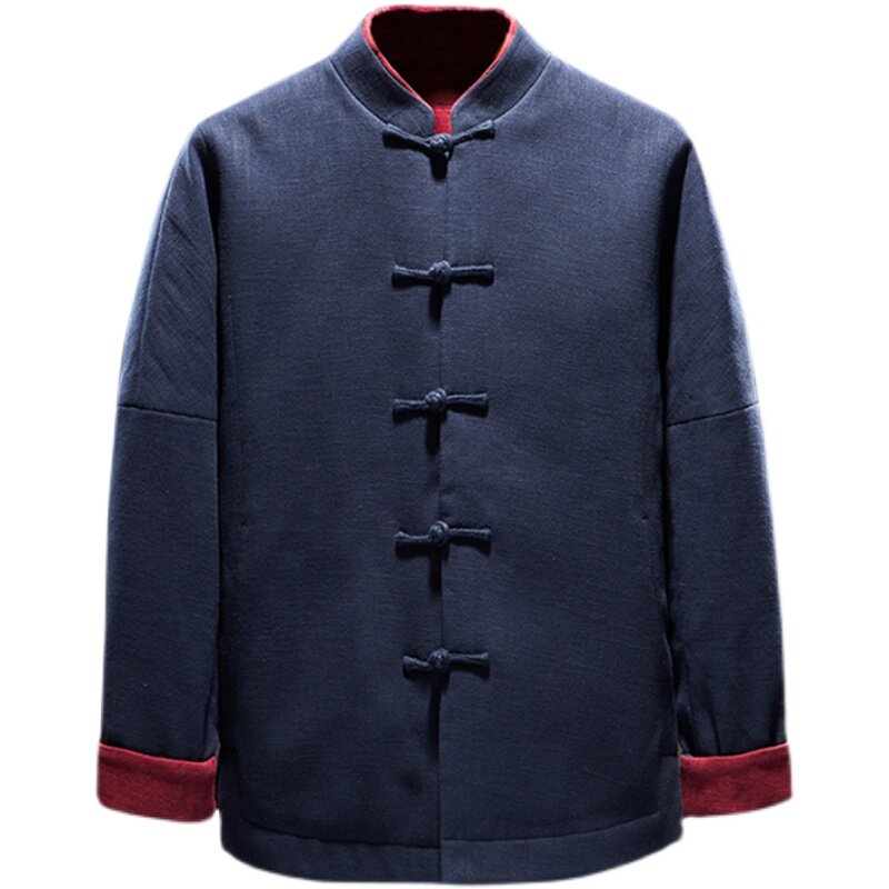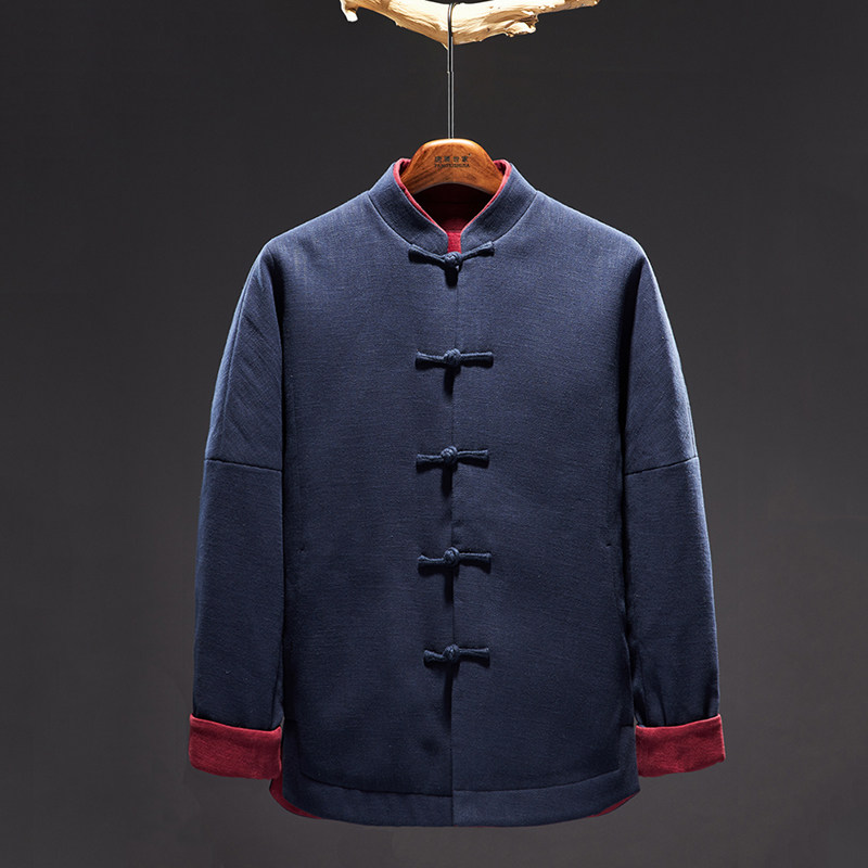 Original Tang Dress Cotton Padded Jacket China Wind Male Pan Button Cotton Clothing Winter Warm Chinese Cotton Robe Loose Zen Coat Cotton Linen Jacket