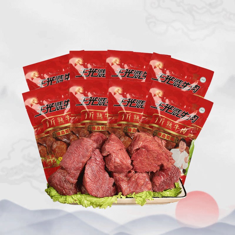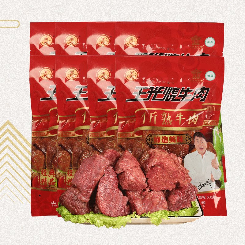 Wang Guangburn beef vacuum Shandong Heze specialty produces five incense large pieces of cooked beef per bag net content 500g*8
