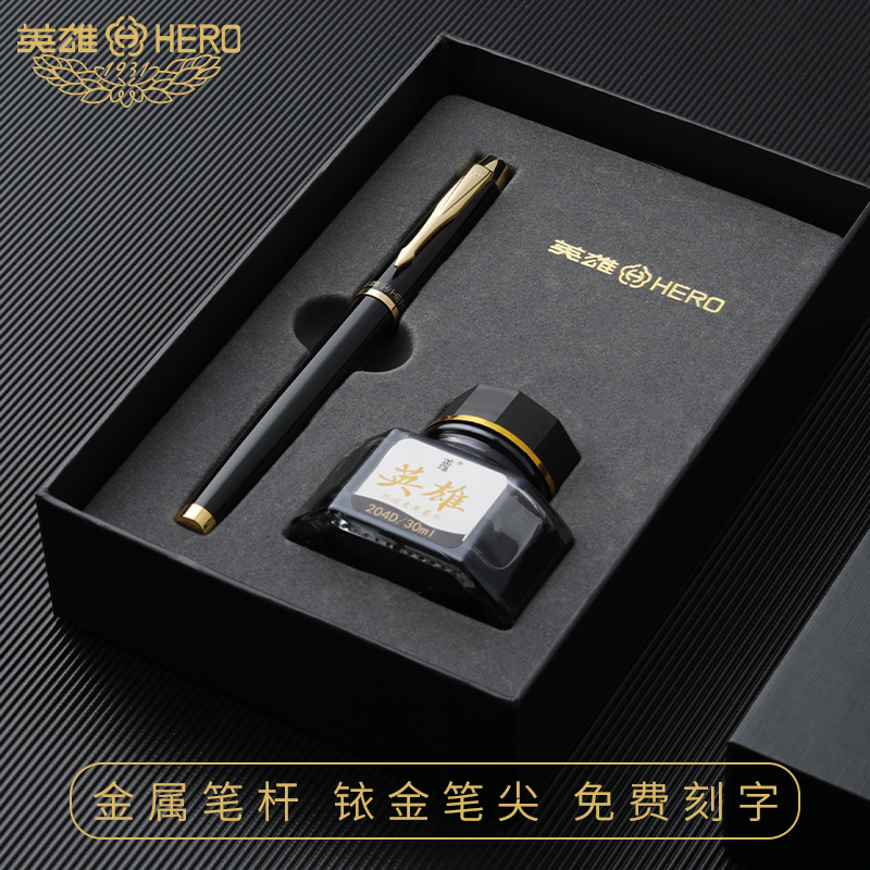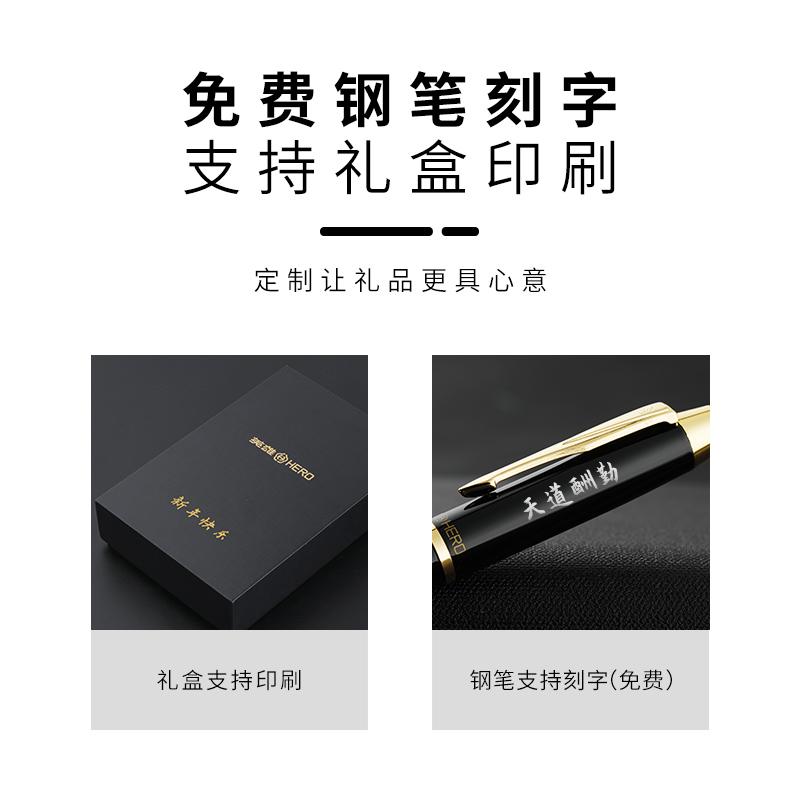 (2021 new product)HERO hero pen gift gift 7006 black gold clip ink pen for students with adult word practice official high-grade gift can be customized LOGO