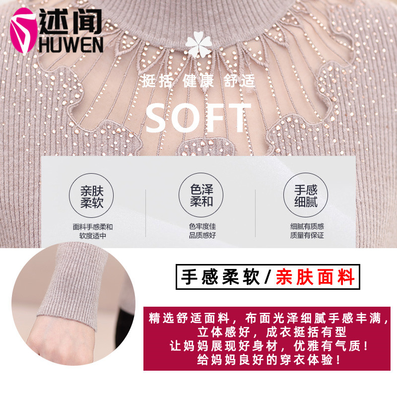 Mother's autumn half-high collar long-sleeved bottoming shirt 2021 new middle-aged and elderly women's autumn and winter foreign style sweater 50-year-old top