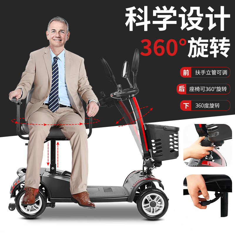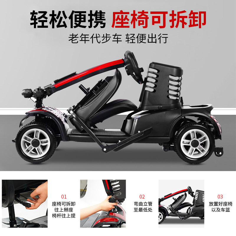 Elderly scooter Four-wheeled electric physical and mental disorders Persons with physical and mental disabilities Elderly people picking up children Home Double folding and power-assisted small electric vehicles