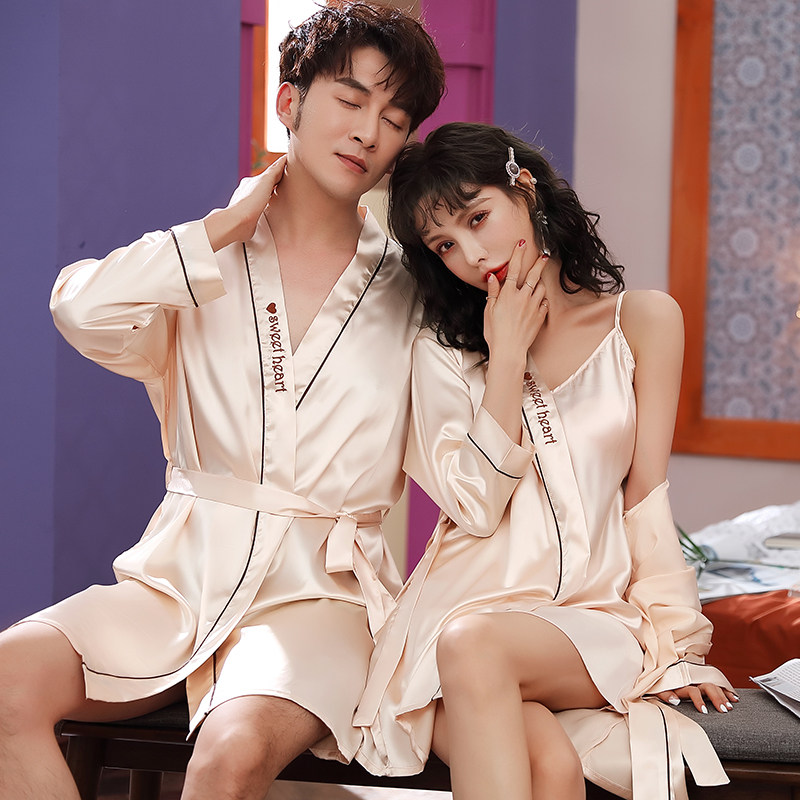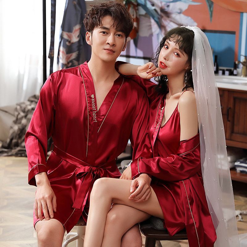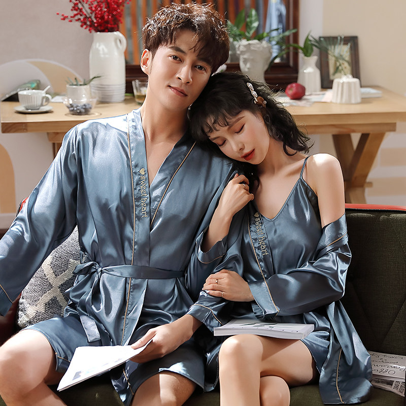 Love letter wine red couple nightgown Love letter champagne couple nightgown Love letter gray blue couple nightgown Love letter navy blue couple nightgown
