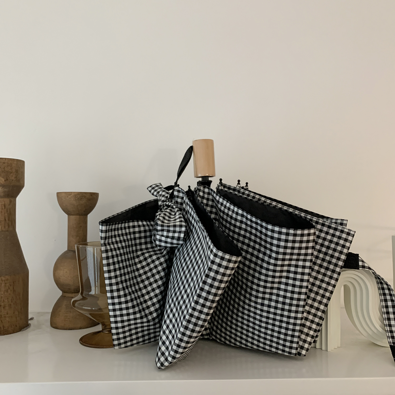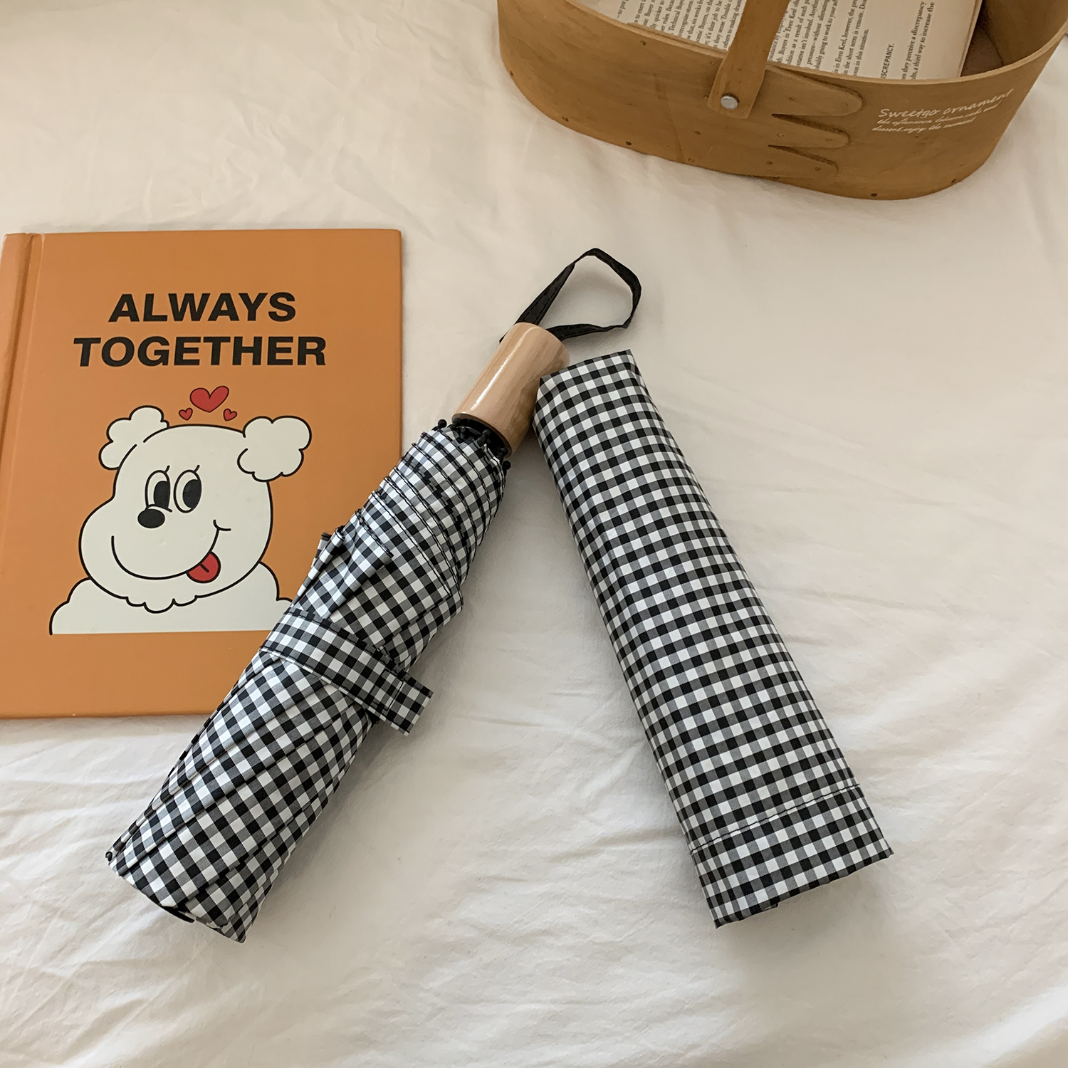 Xinhelp grocery store wood handle Grain umbrella student portable shade black rubber umbrella clear and rain dual-use umbrella female umbrella