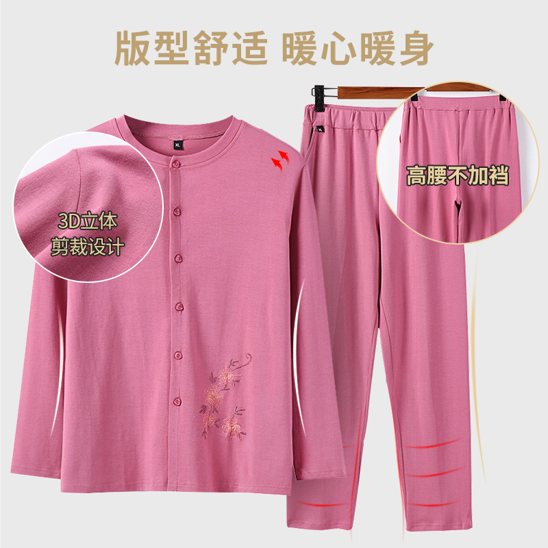 Lady Pure Cotton Autumn Clothes Suit Seniors Combed Cotton Autumn Clothing Sanitary Pants Large Size Yard old All cotton lingerie suit Spring and autumn