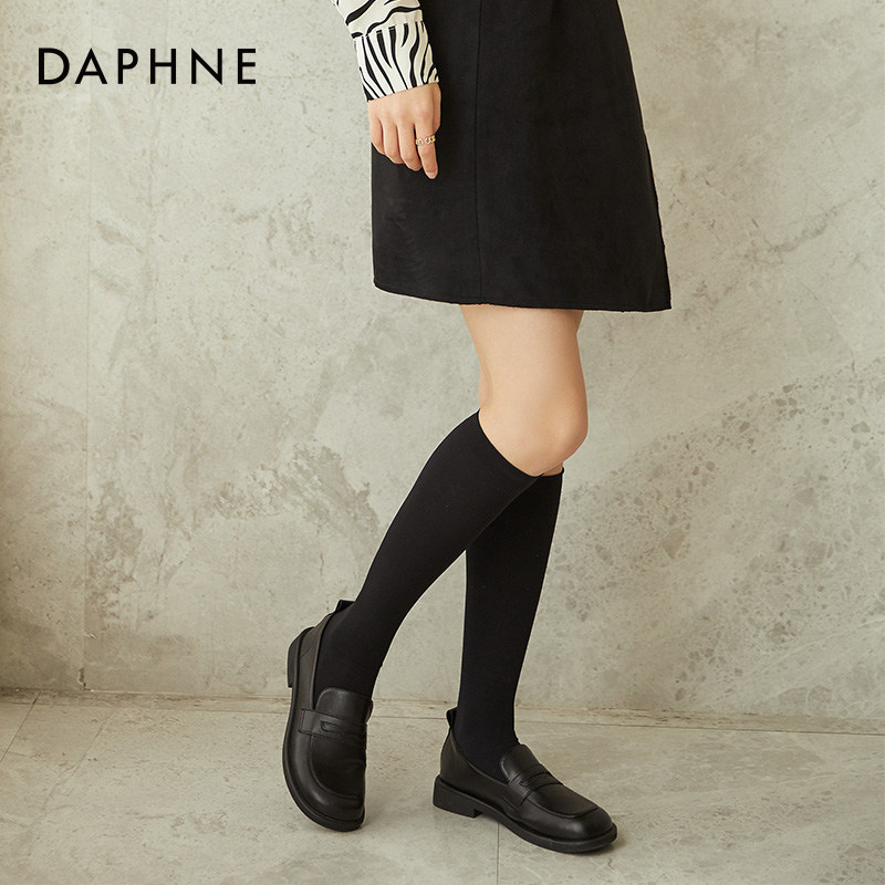 Daphne Girls Shoes Small Leather Shoes Women 2022 Spring New Soft Leather Round Head Day Ensemble 100 Hitch Black Thick Heel Single Shoes
