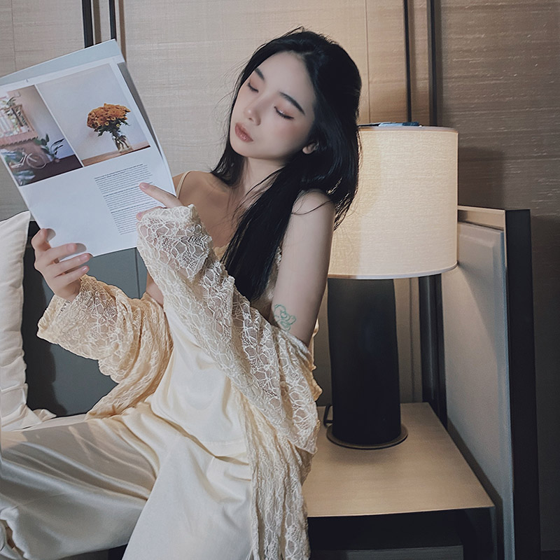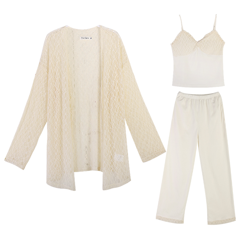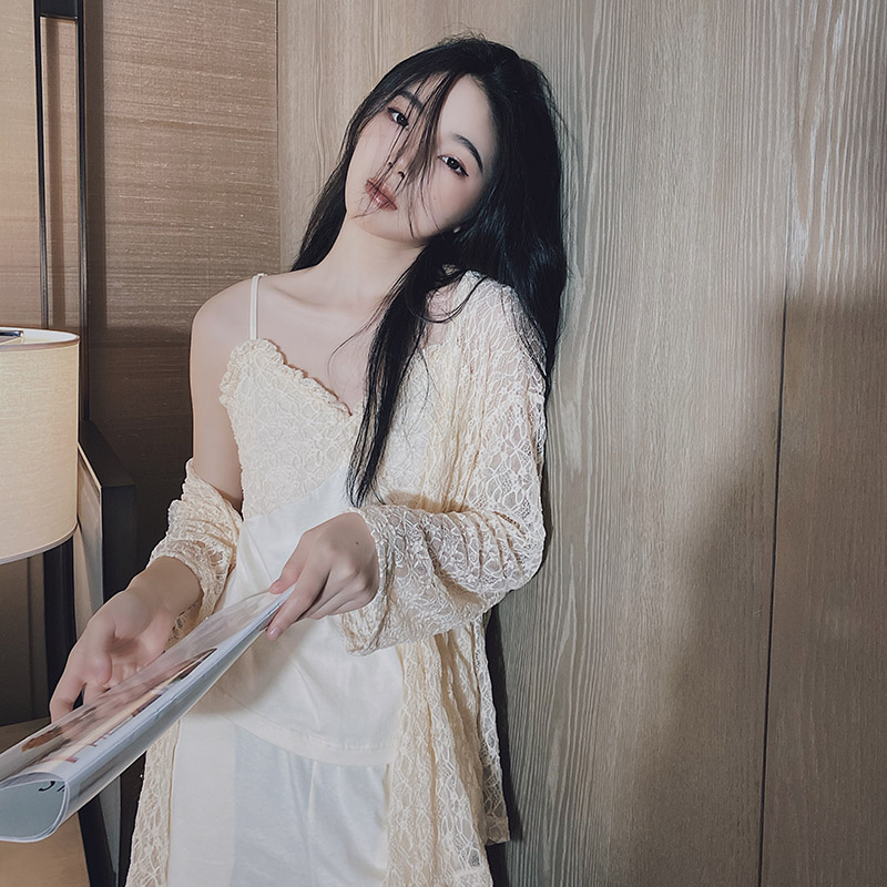 Pajamas spring and autumn women's summer three-piece set sweet and sexy suspenders 2022 new western style cotton home clothes
