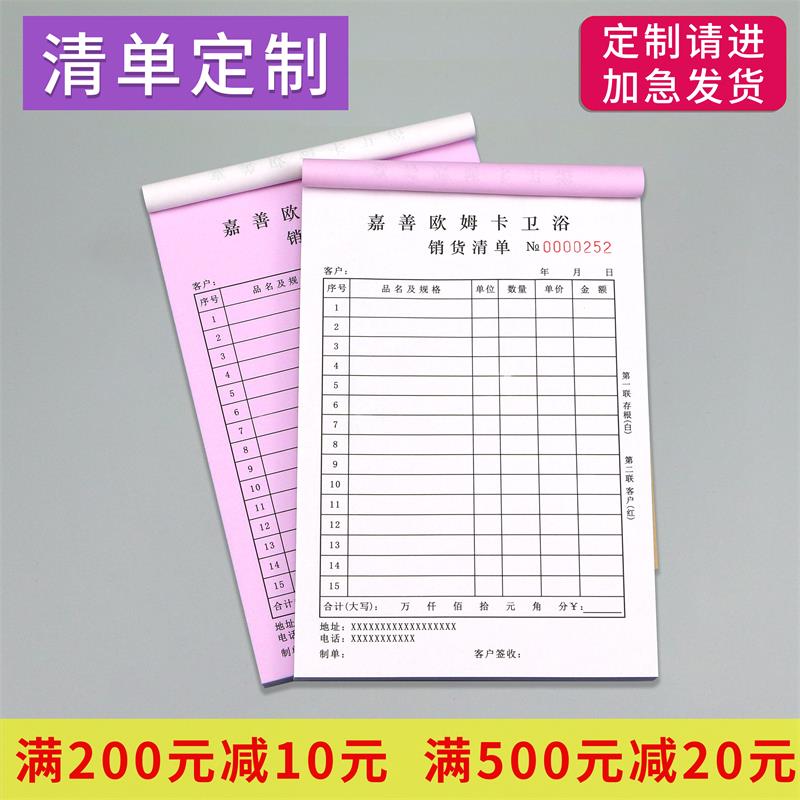 Receipt Custom Delivery Note Custom Two-In-Three Documents Sales List Shipping Order Shipment Sales Point Menu Four-Link Customized Service Bill Contract Customized Collection Two-Link Out of the Warehouse