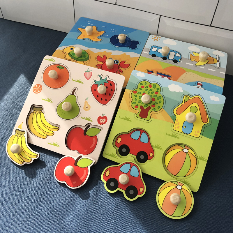 Mon Early Education Toys Puzzle Children's Puzzle Girls Baby Enlightenment Hand Grip Plate Pairing Cartoon Wooden Nail-inlaid plate male