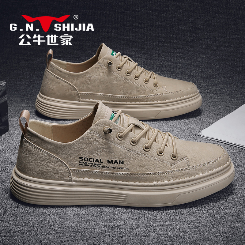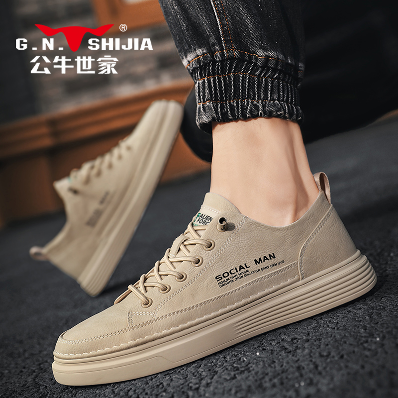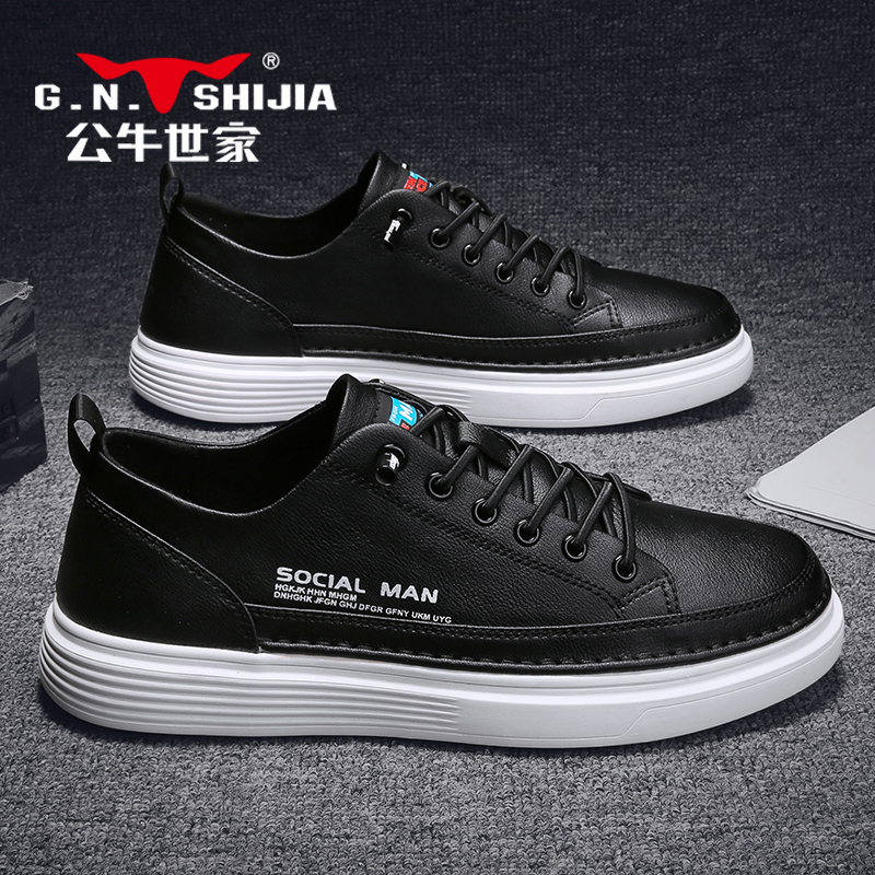 Bull family men's shoes 2022 new winter trend all-match leather small white board shoes genuine leather soft bottom casual leather shoes