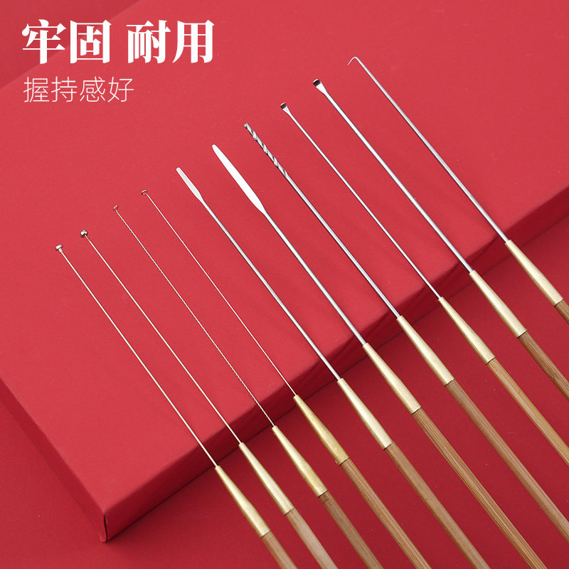 Professional Old Bamboo Plucking Ear Tool Digging Ear Specialty Extraction Ear Suit Mushroom Head Earrings Earrings Ear Turner