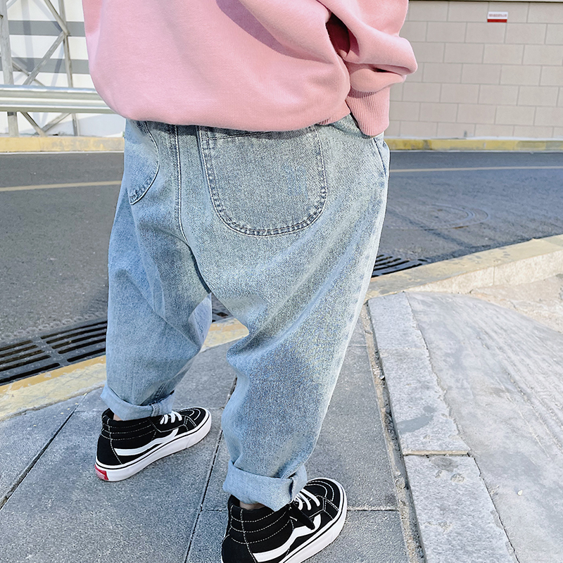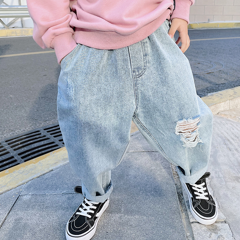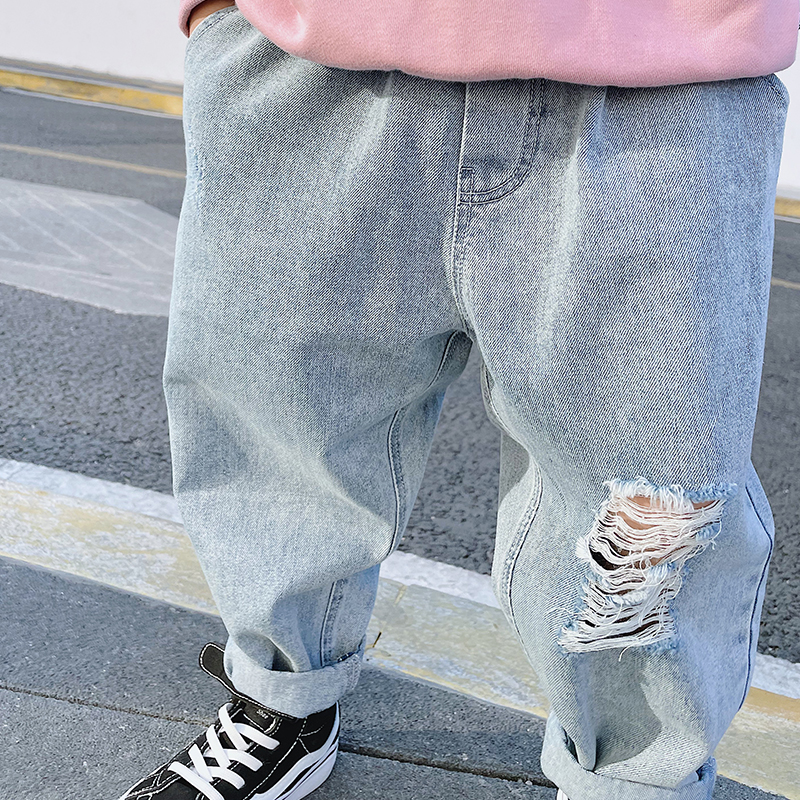 (Six Fold Back) Boy's new Spring and Autumn Broken Cave Jeans Children Pants Han Version Children Toddler Pants in Korean version