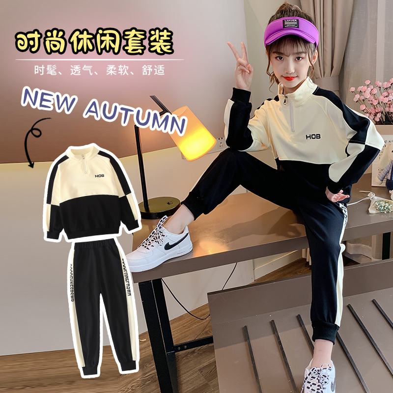 Girl Spring Clothing Suit 2022 New Korean version CUHK Tong Chun Qiuwei Clothing Foreign Pie Sports Pants Tennis Red two sets of damp