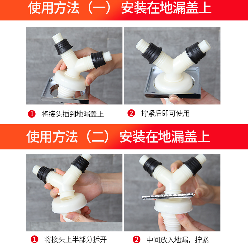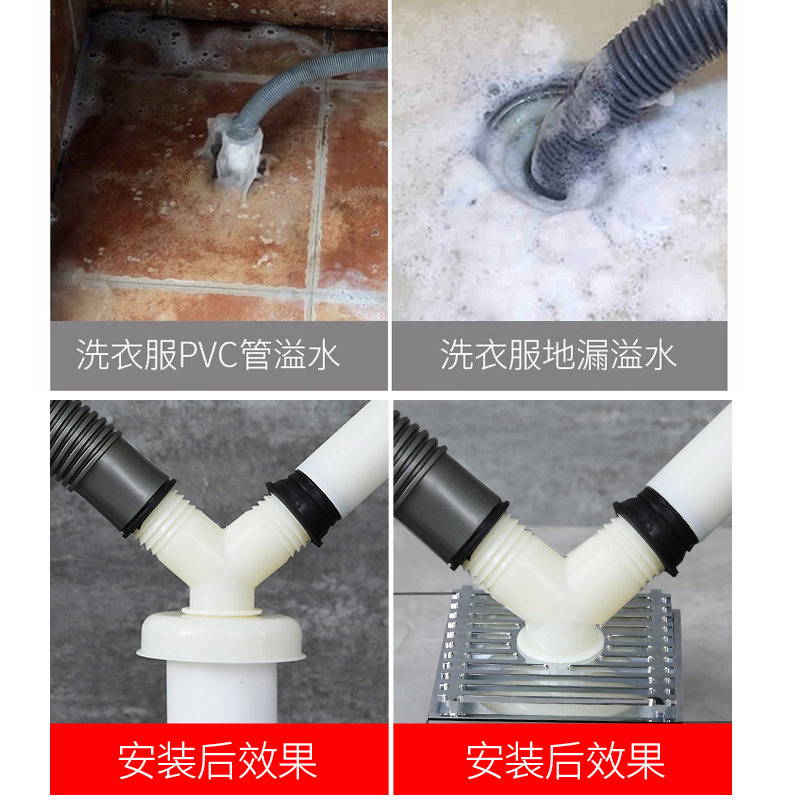 Floor drain connector Two-in-one three-way head Washing machine drain pipe sewer pipe Y-type water separation double connection Two universal
