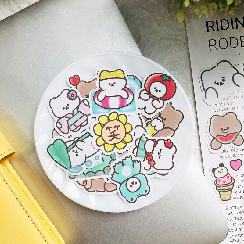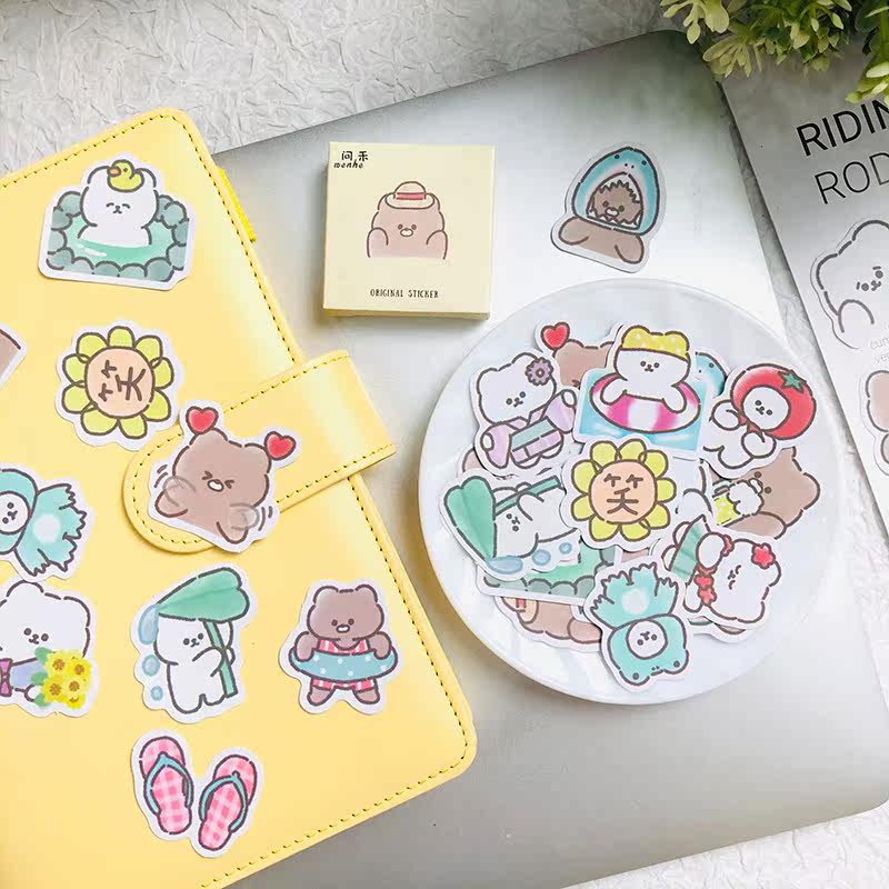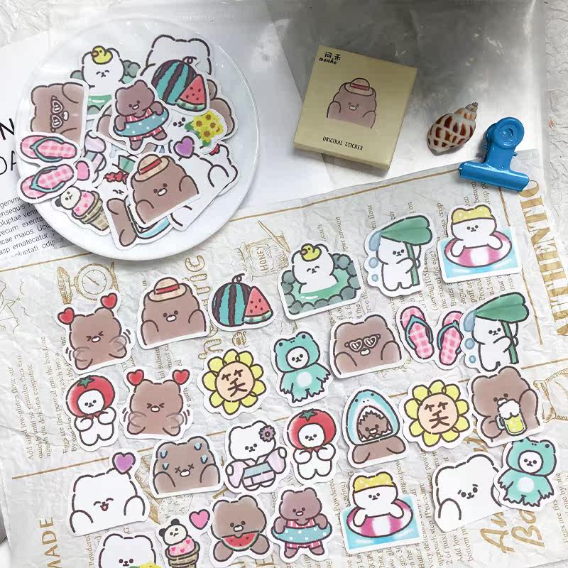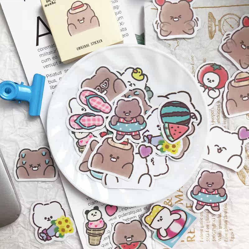 Handbook stickers cute girls in wind not repeat handbook sticker diy decoration cocoa bear small pattern paperback package waterproof cartoon small sticker plant material