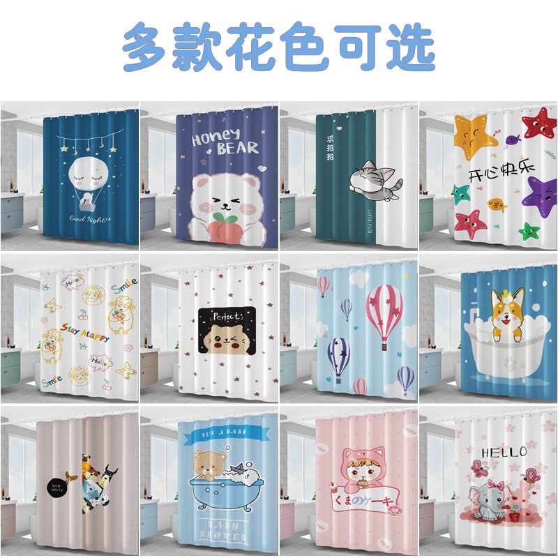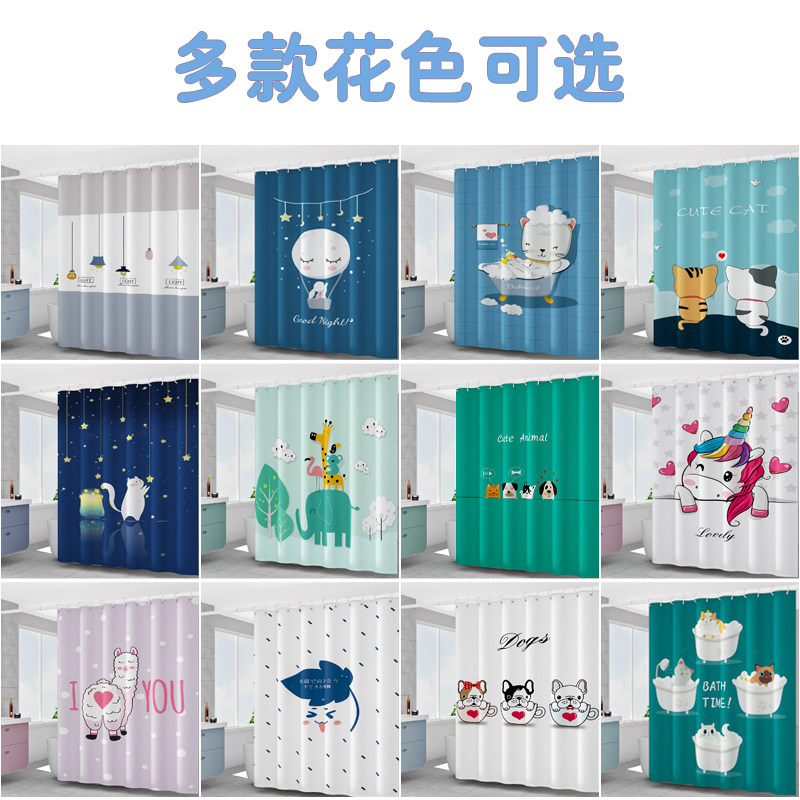 Cosmetic room polyester fiber cloth shower curtain non-perforated partition window dry and wet separation thickened bathroom waterproof cloth mildew curtain