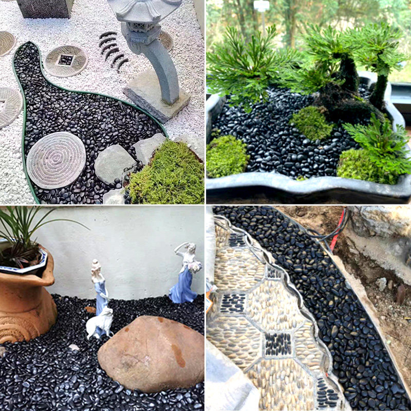 Black cobblestone polished ravioli stone original stone natural decoration with view multi-meat potted patio paved with small stones