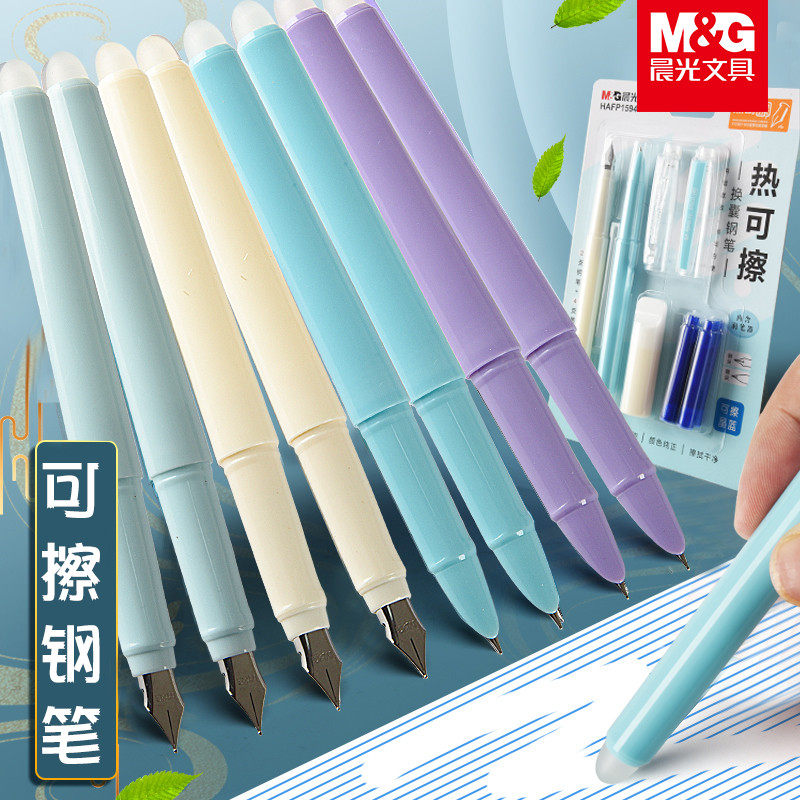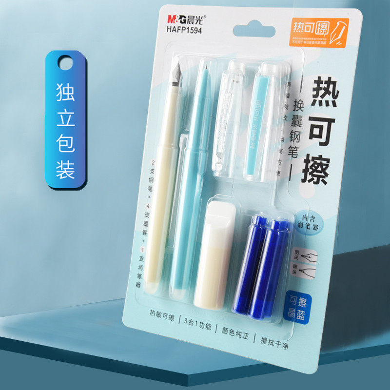Morning light erasable pen Magic erasable heat erasable primary school special third grade Mo Yi Erasable thermal erasable pen Children's beginner practice can replace the ink sac Positive posture Pure blue Black crystal blue pen