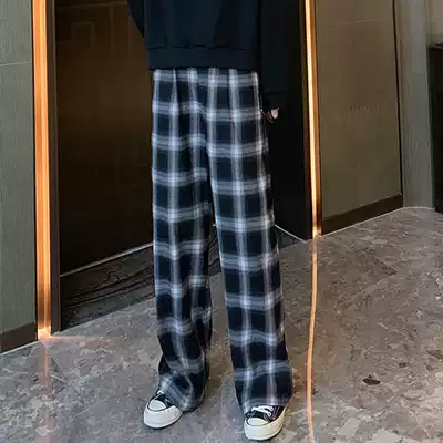 South Korea Net Red Tide brand black and white plaid pants women's loose straight tube high waist casual wide leg sports pants spring and autumn