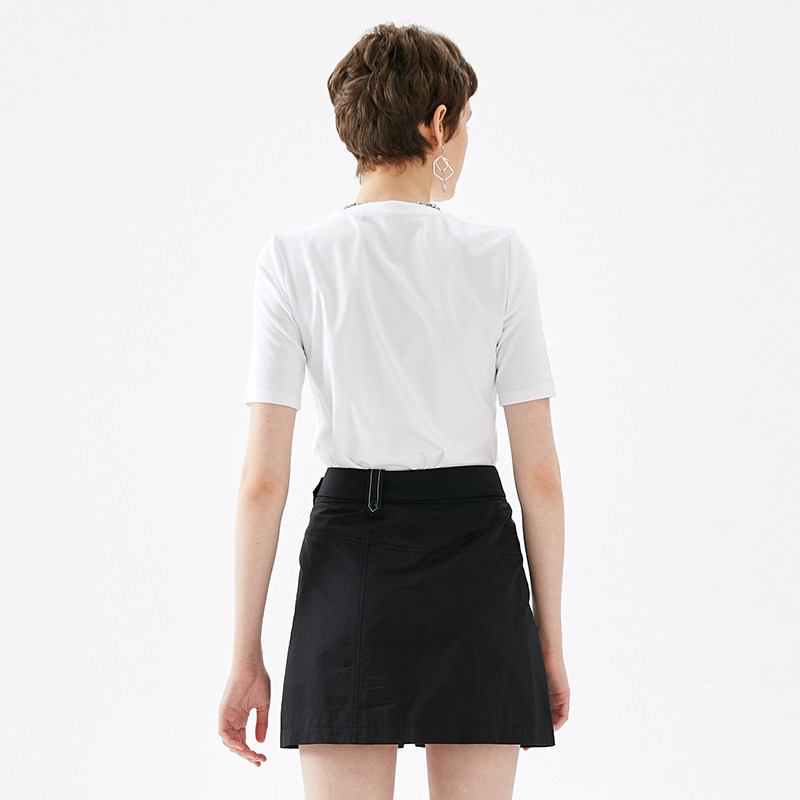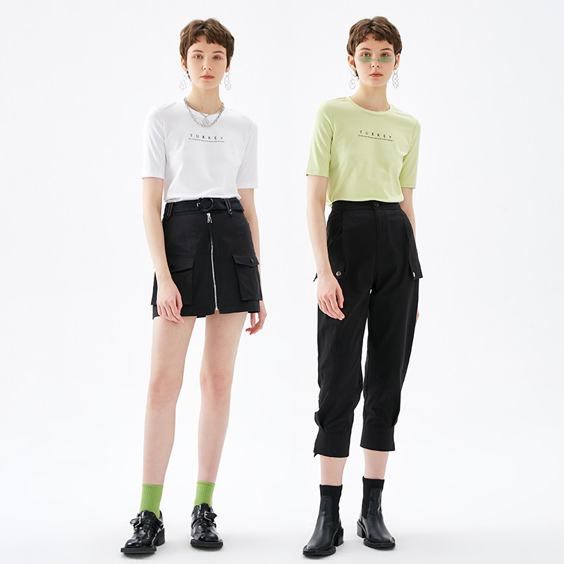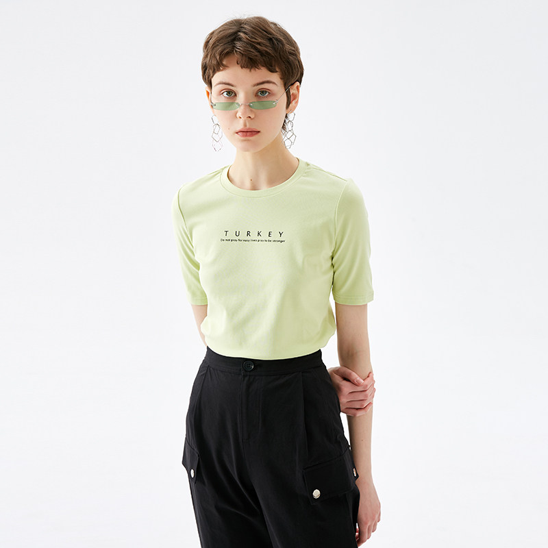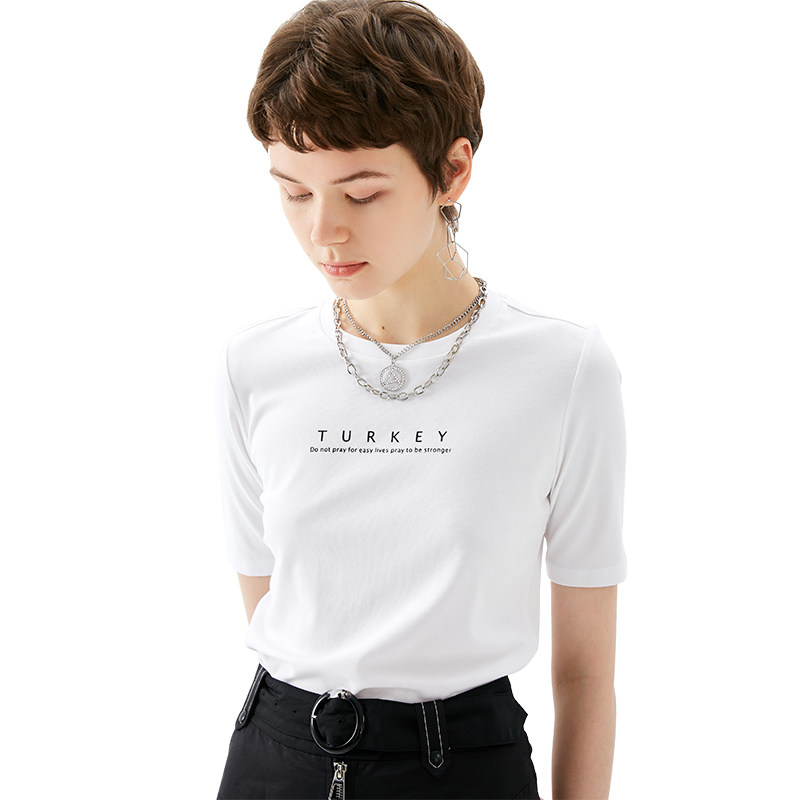Jamor autumn new simple and elegant round neck short-sleeved T-shirt women's loose wild letter printing top
