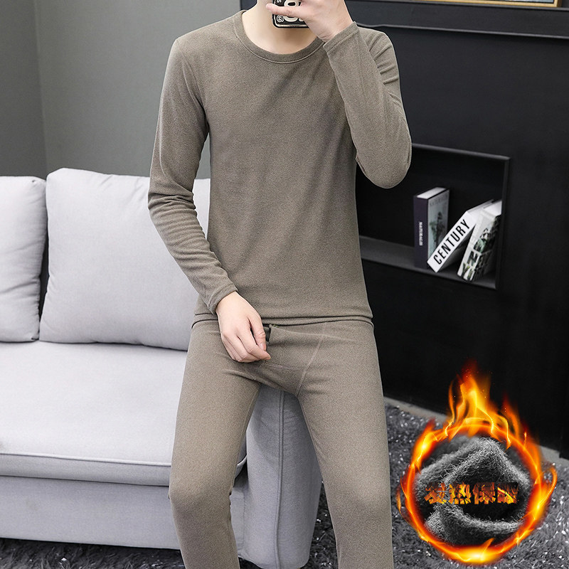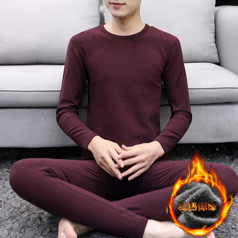 Adolescent winter Derong autumn clothes sanitary pants men's soil seamless heating pants double-sided German velvet cotton sweater set