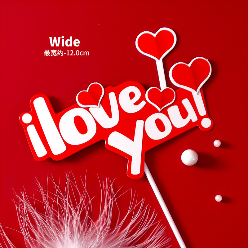 Valentine's Day cake decoration bright red love plug-in 520LOVE love couple theme birthday card accessories