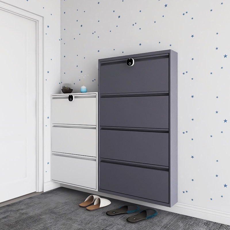 Fingerprint lock shoe cabinet household doorway large capacity to cover the doorway of the masonry locker cabinet ultra-thin shoe cabinet red