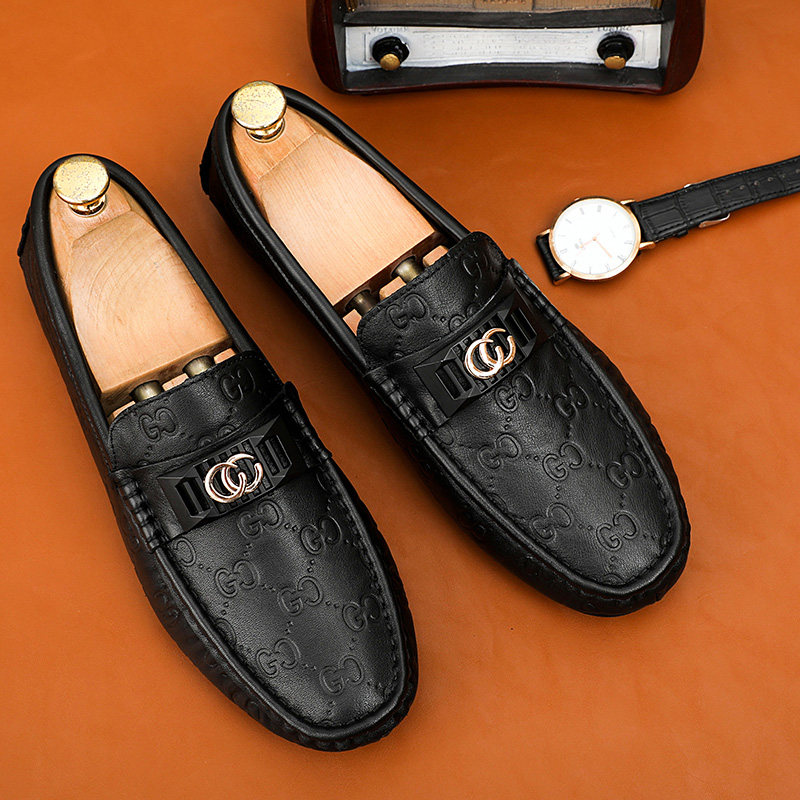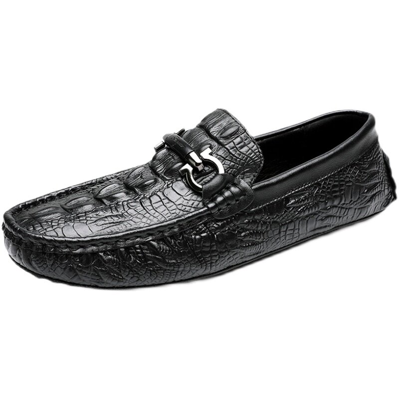 Peas shoes men's 2022 new leather Korean version all-match non-slip trend youth lazy shoes crocodile pattern casual leather