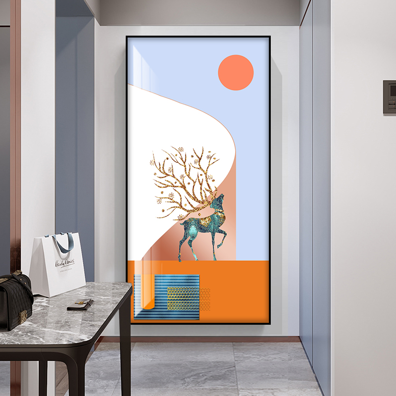 Vertical corridor hallway hallway masonry decoration minimalist elk abstract murals Nordic wind modern living room single-piece hanging painting